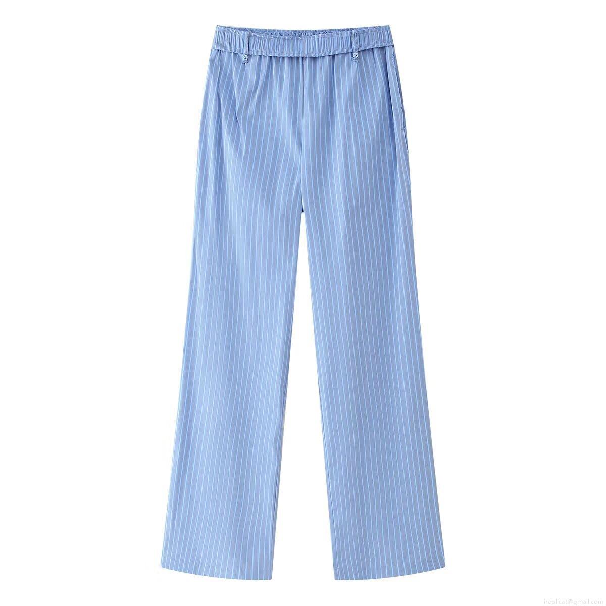 Women's Striped 2 Piece Pant Sets Sleeveless Button Down Vest And High Waisted Elastic Long Pants Outfits Summer Casual Streetwear Suit