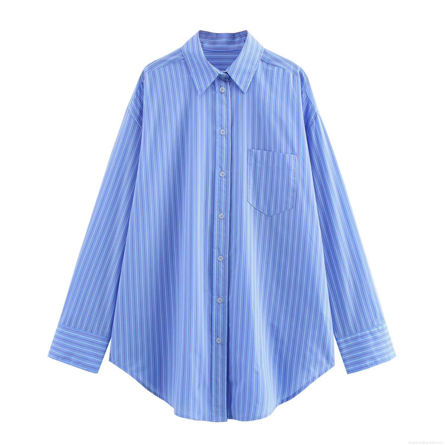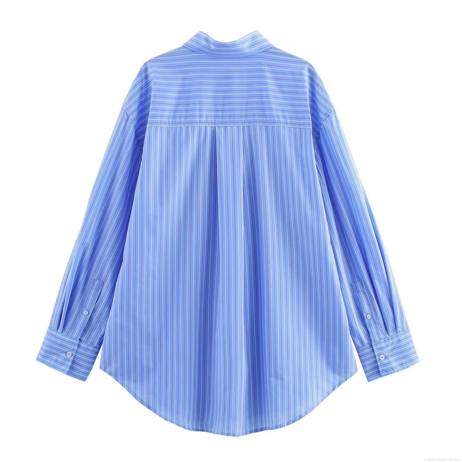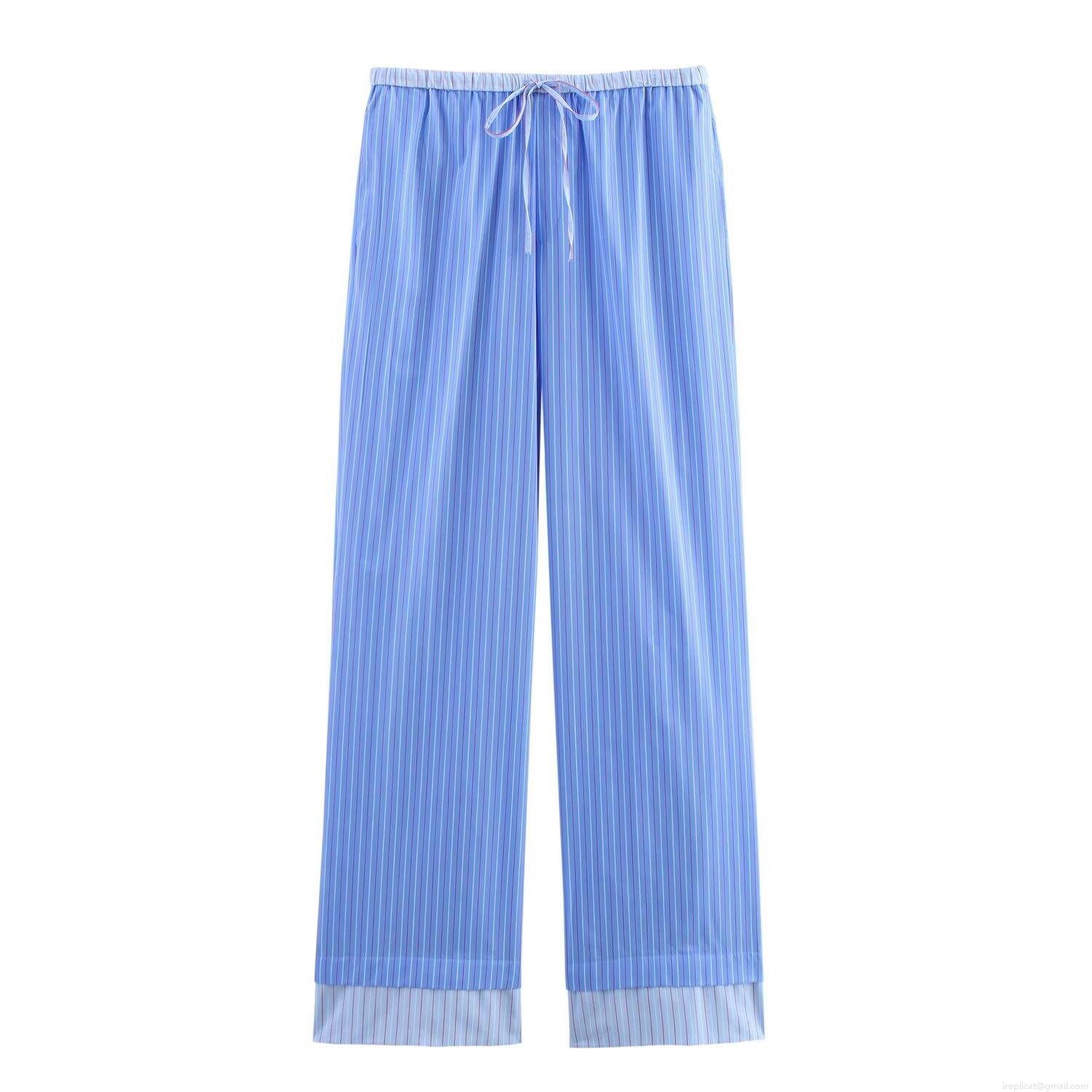 • Women's Striped 2-Piece Set Polyester Long Sleeve Button Down Shirt And Wide Leg Pants Loose Casual Streetwear Outfit For Women