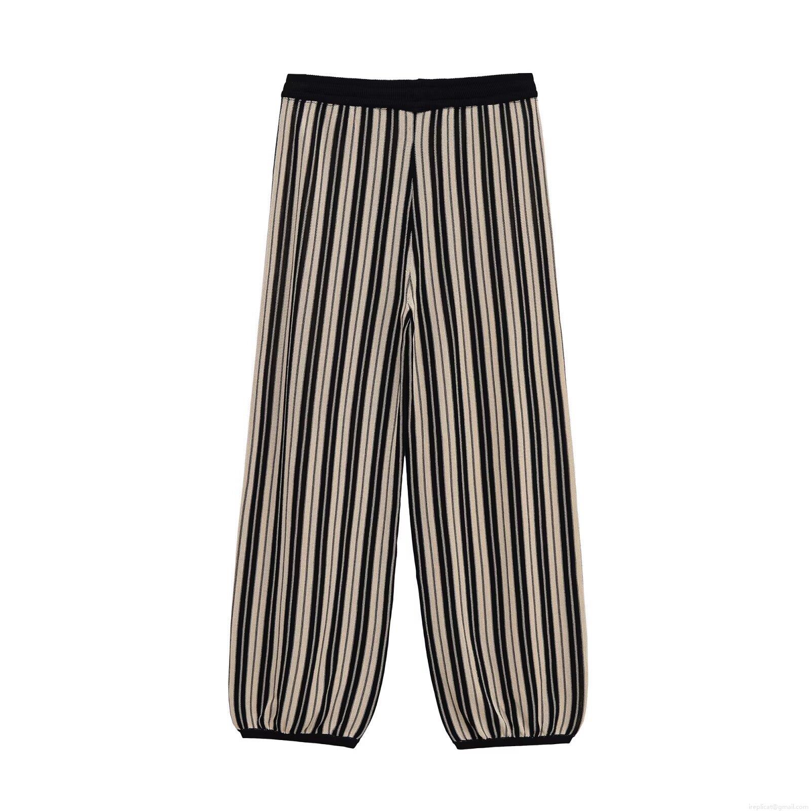 Women's Striped Knit Two Piece Set Linen Texture Button Round Neck Short Sleeve Top And High Waisted Drawstring Long Pants Casual Streetwear Outfits