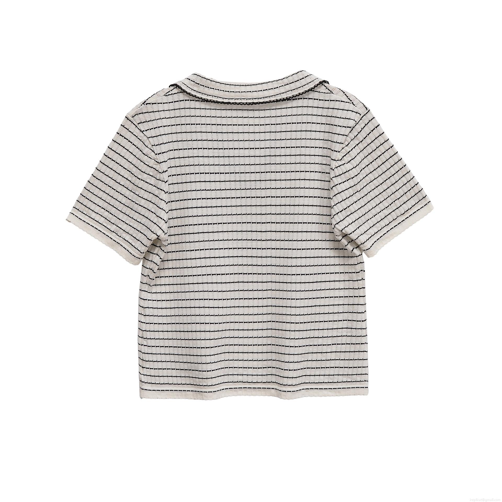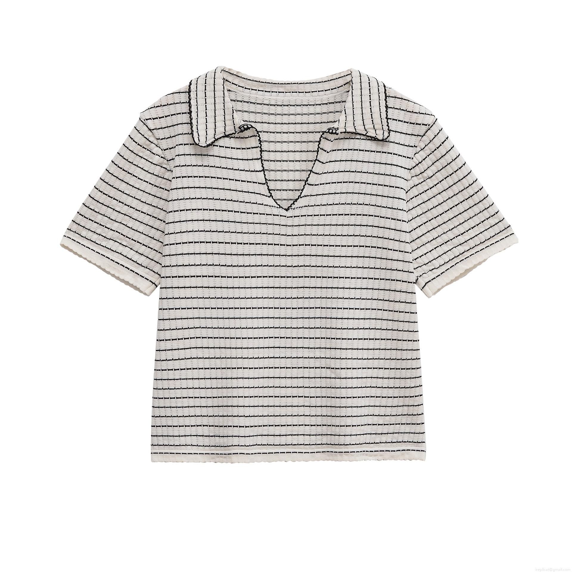 Wavy Edge, Rough Texture, V-neck Collar, Horizontal Pinstripes