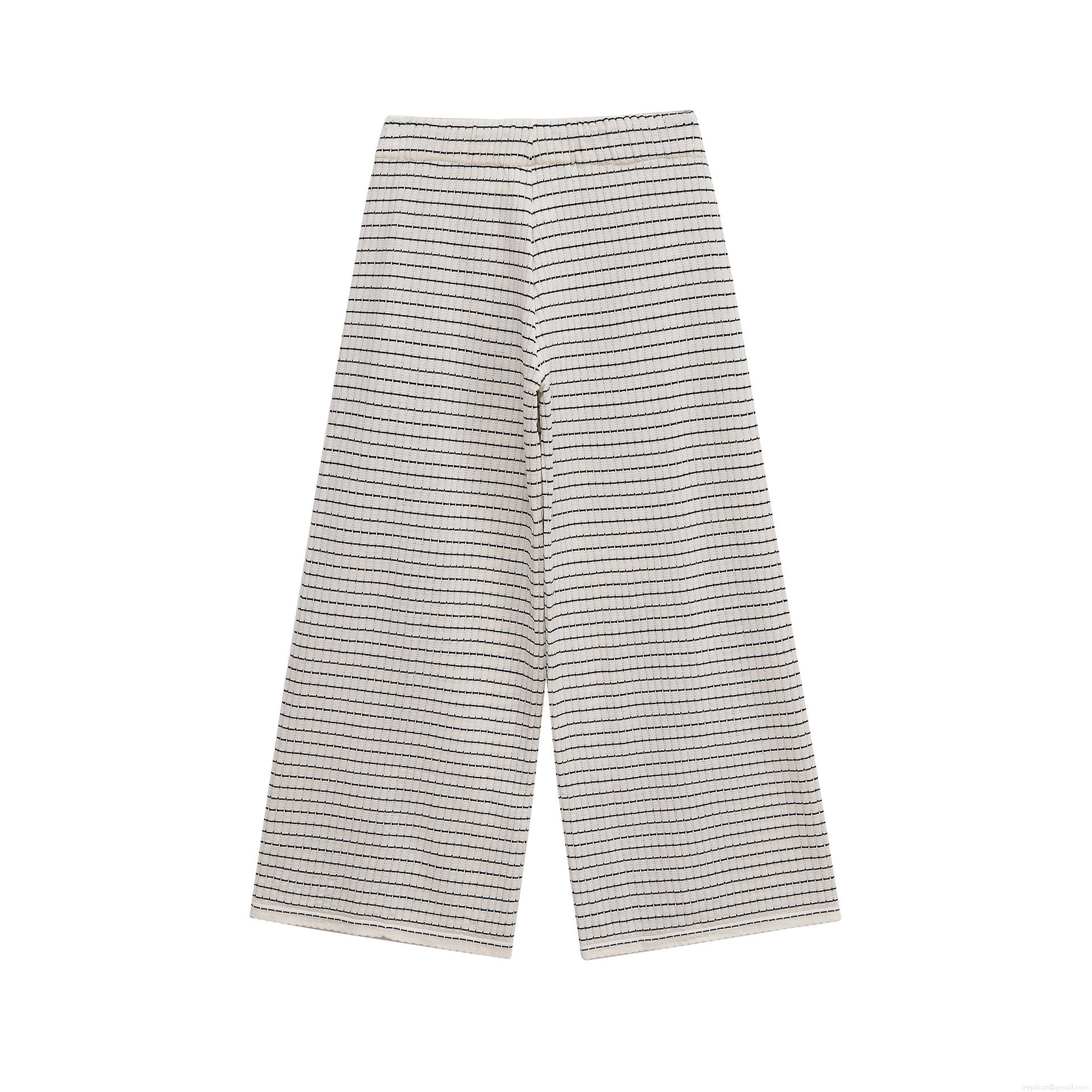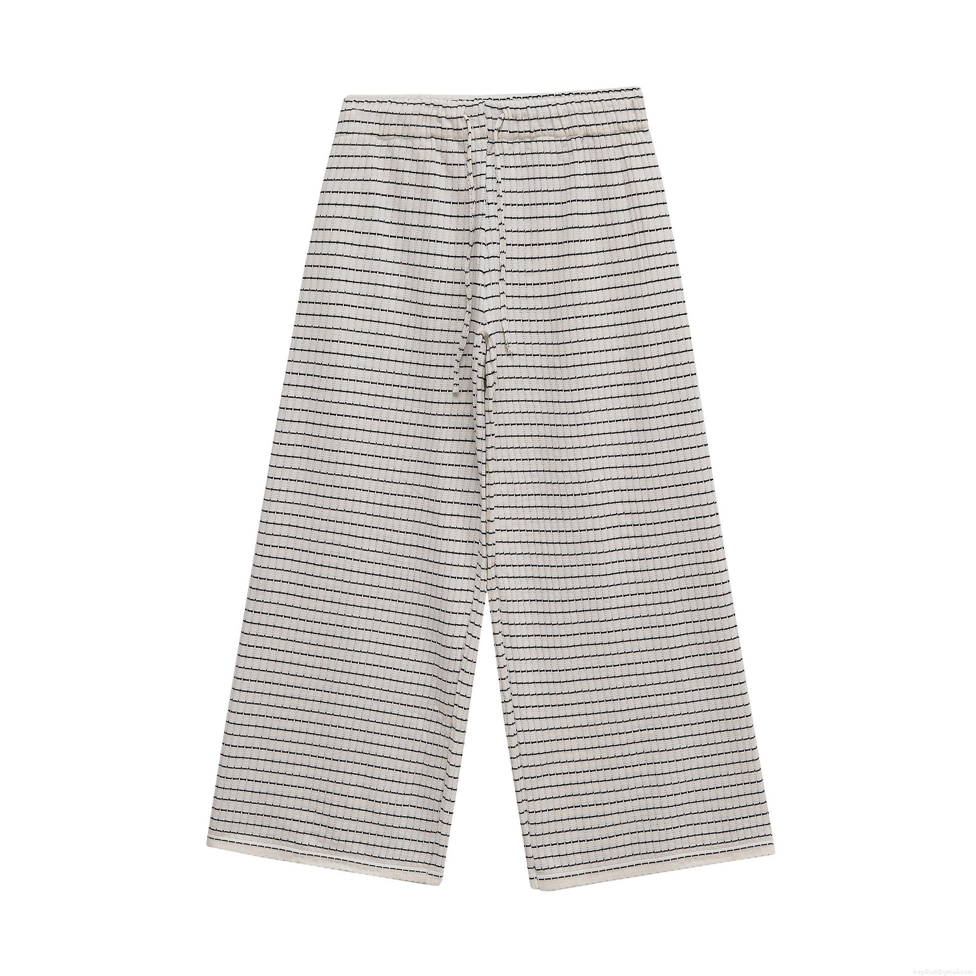 • Women's Striped Knit Two-Piece Set Short Sleeve V-Neck Polo Top and Wide Leg Pants Casual Ribbed Texture Spring Summer Lounge Wear Outfit