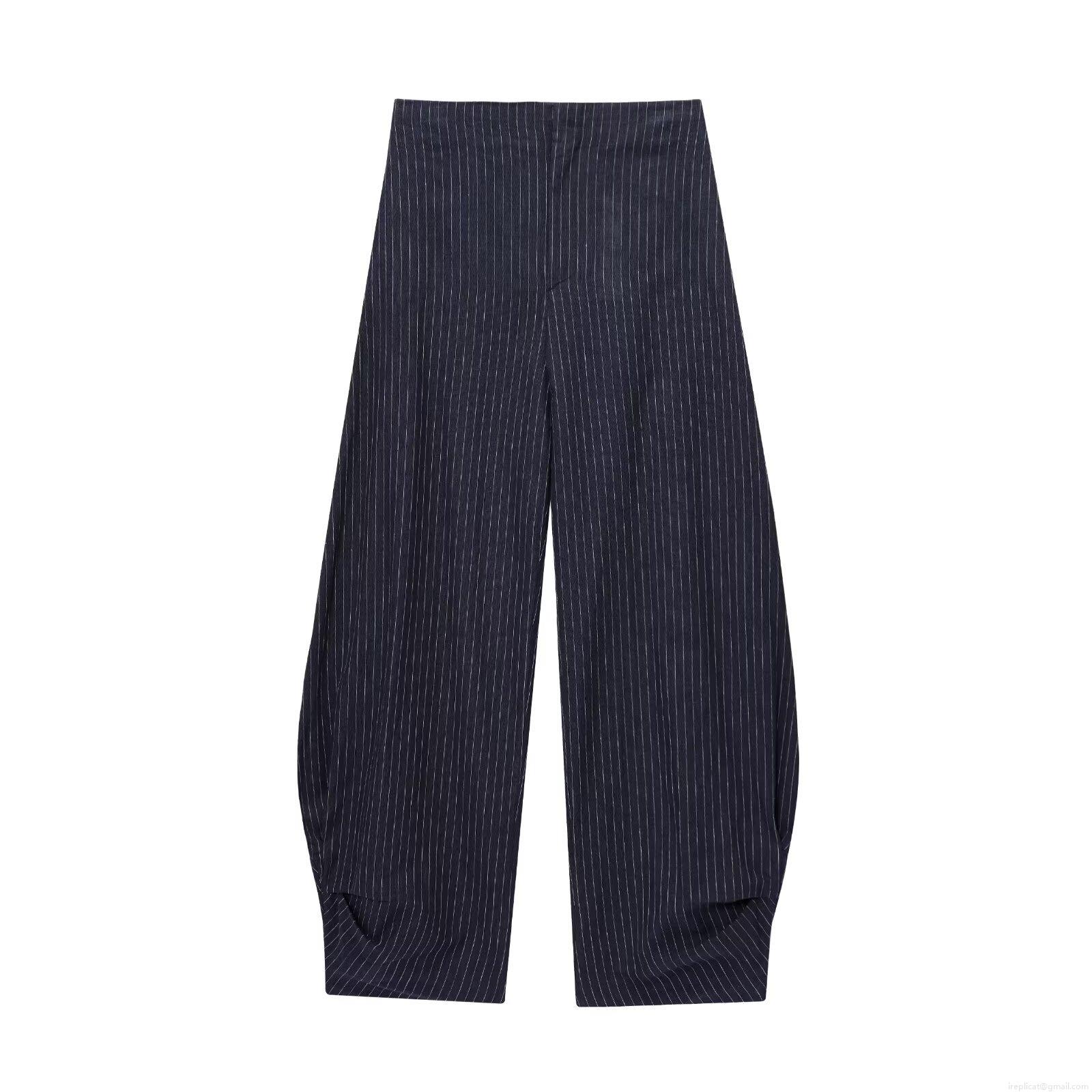 Pinstripes, Distressed, Vertical Stripes, Wide-leg, Side Buckle, Balloon Pattern