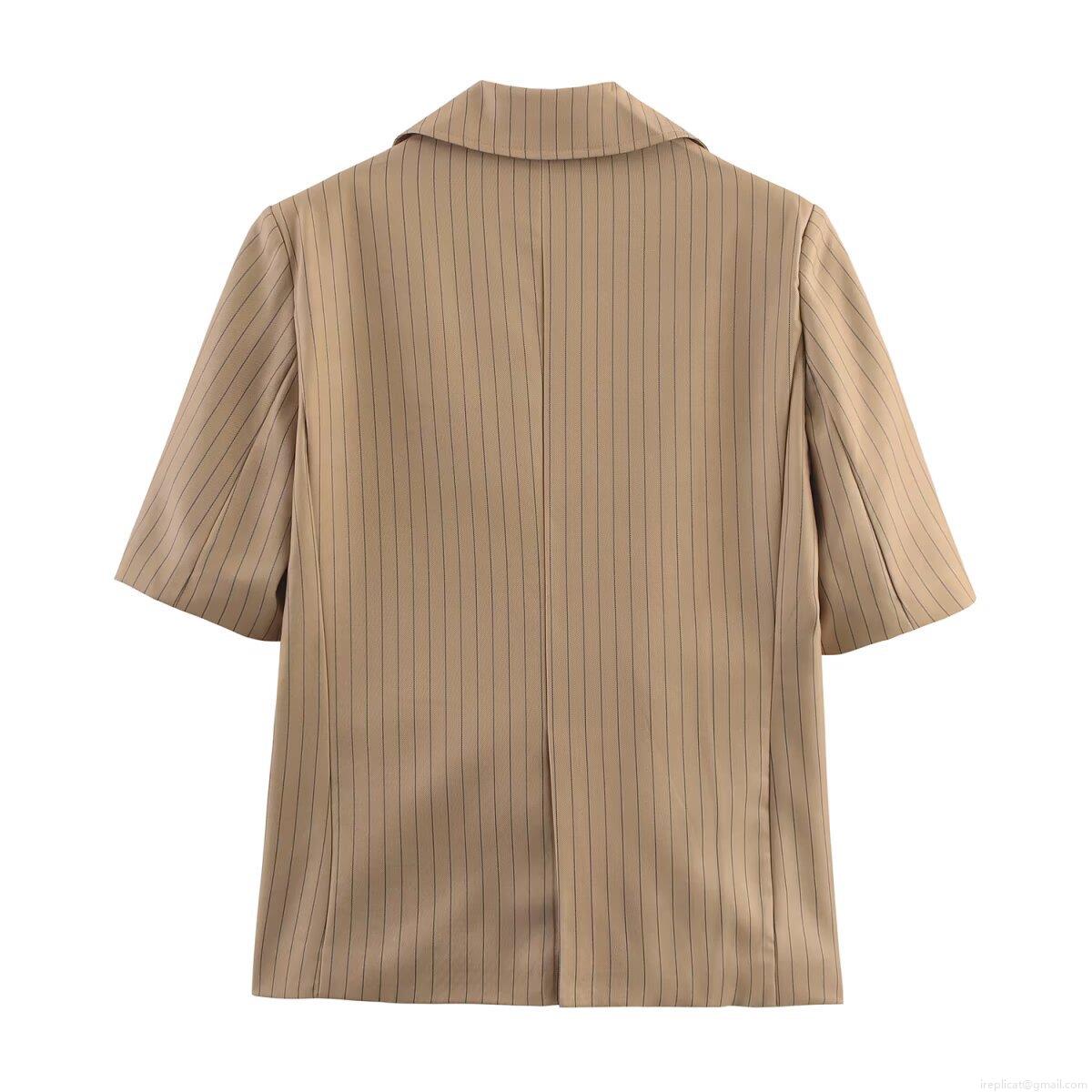 • Women's Striped Linen Blend Short Sleeve Blazer And Wide Leg Pants Set Casual Office Streetwear Two Piece Suit