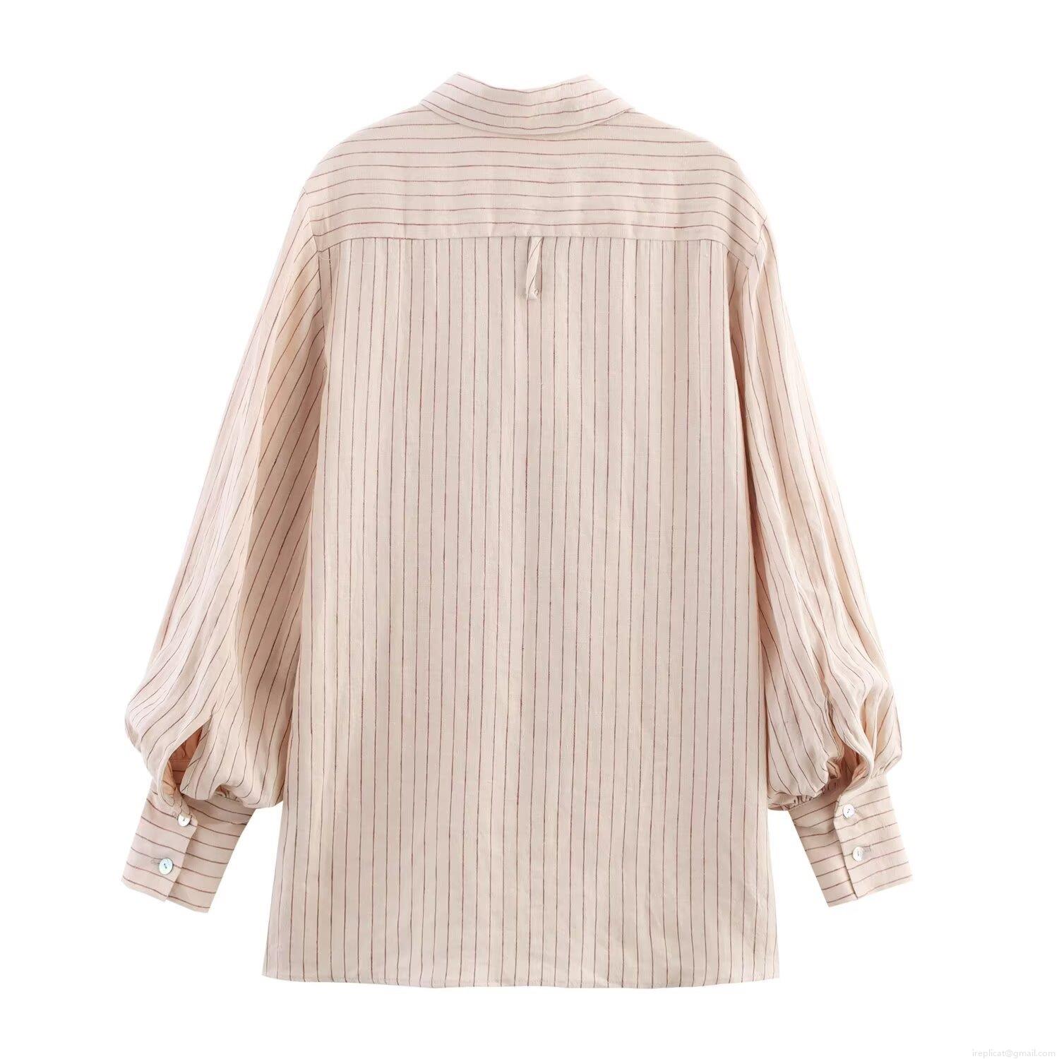 Women's Striped Linen Blend Two Piece Set Casual Long Sleeve Button Down Shirt And Drawstring Straight Leg Pants Outfits Streetwear