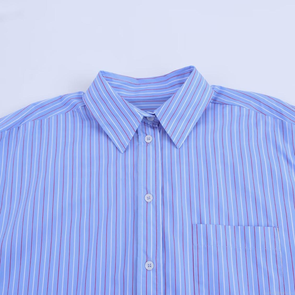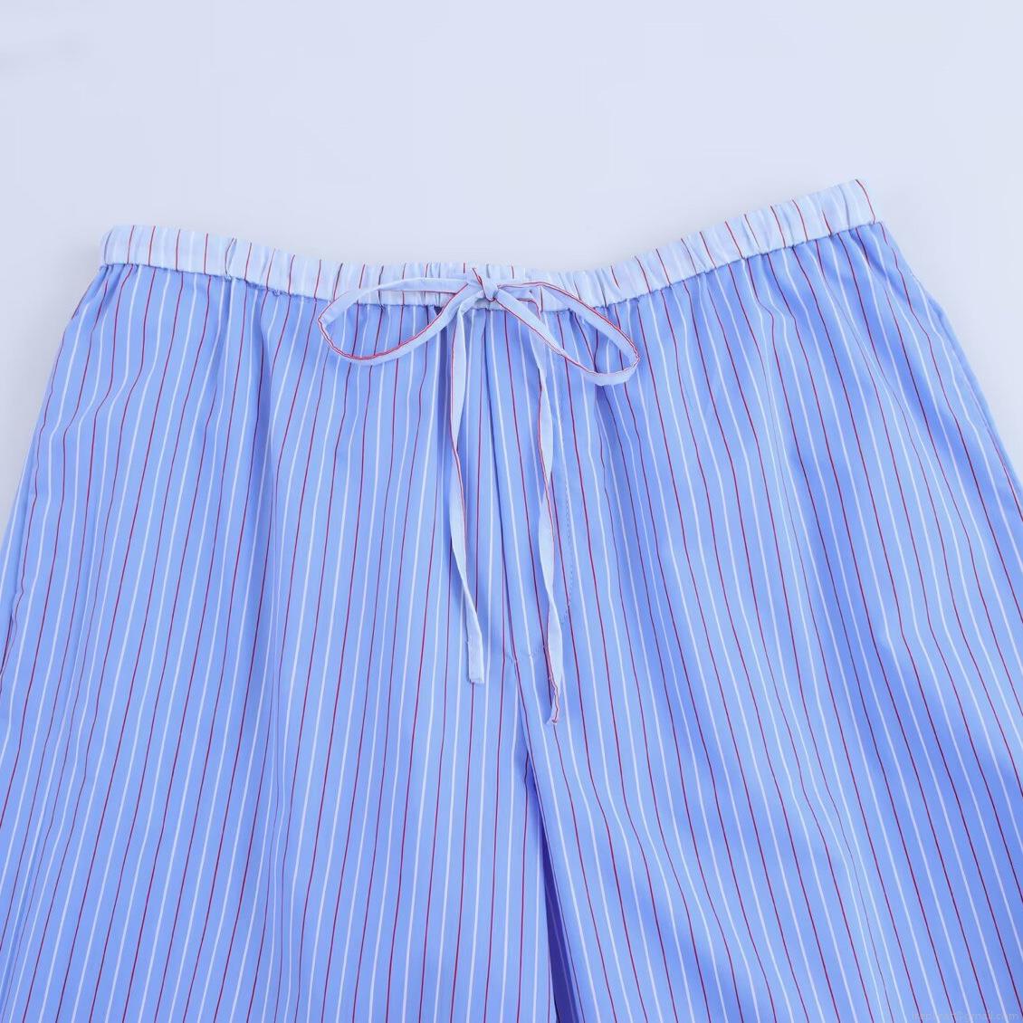 • Women's Striped Two Piece Casual Set Long Sleeve Button Down Shirt And Drawstring Wide Leg Pants Polyester Spandex Blend Loungewear For Ladies Office Commuter Loose Fit Outfit