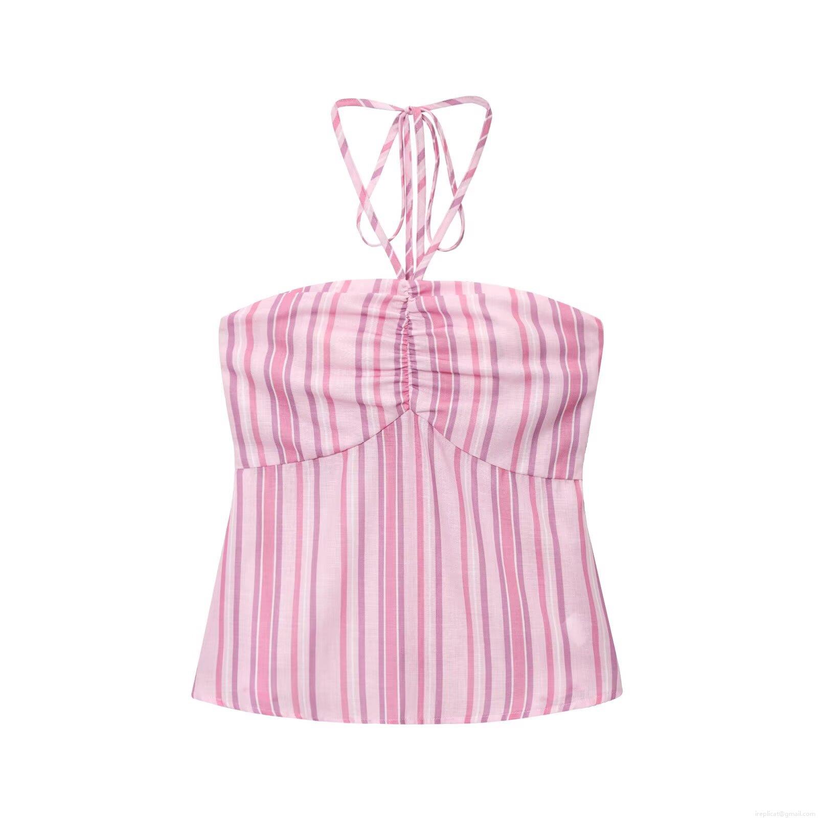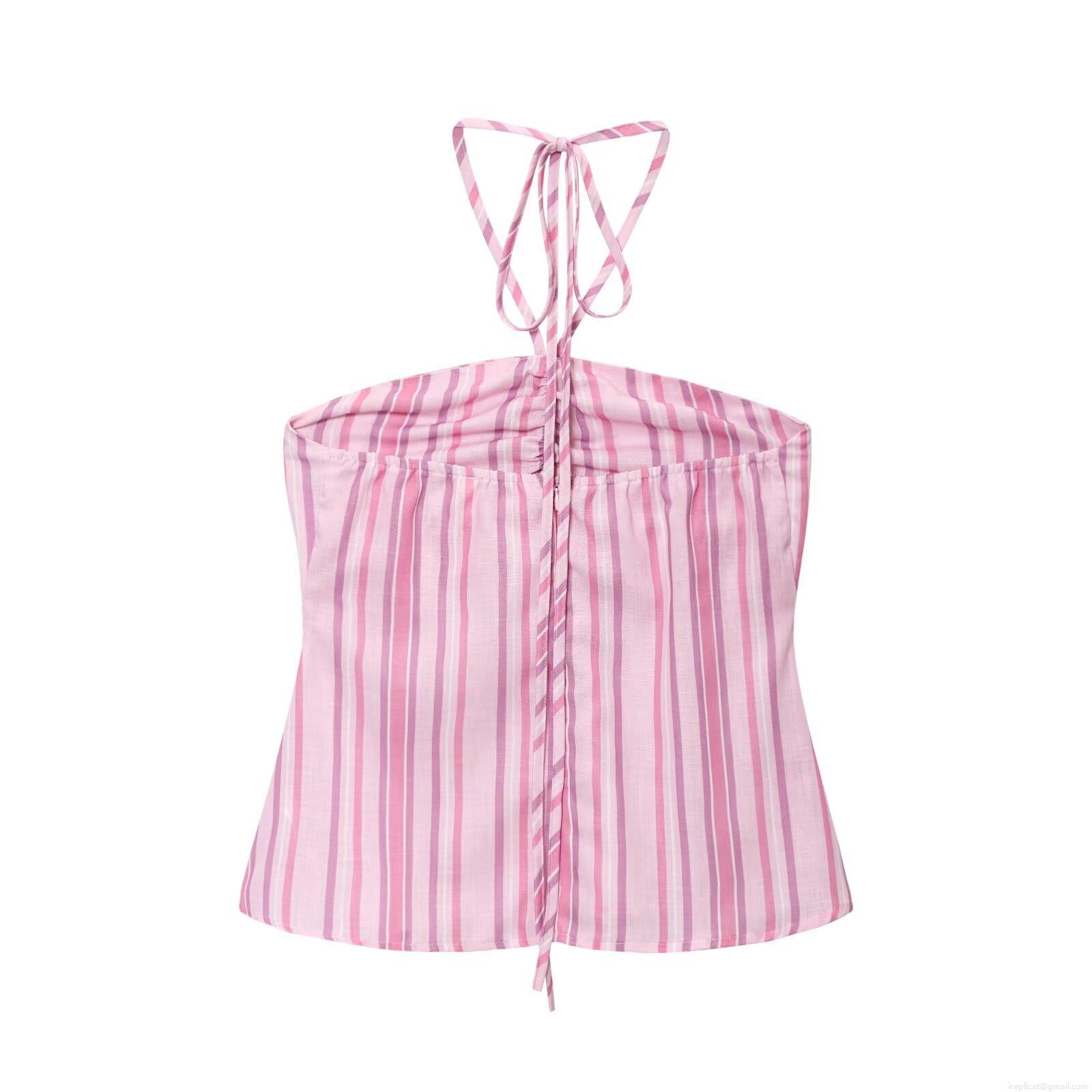 • Women's Striped Two Piece Set Halter Neck Sleeveless Crop Top And Wide Leg Pants Polyester Streetwear Casual Outfits For Summer Autumn Women