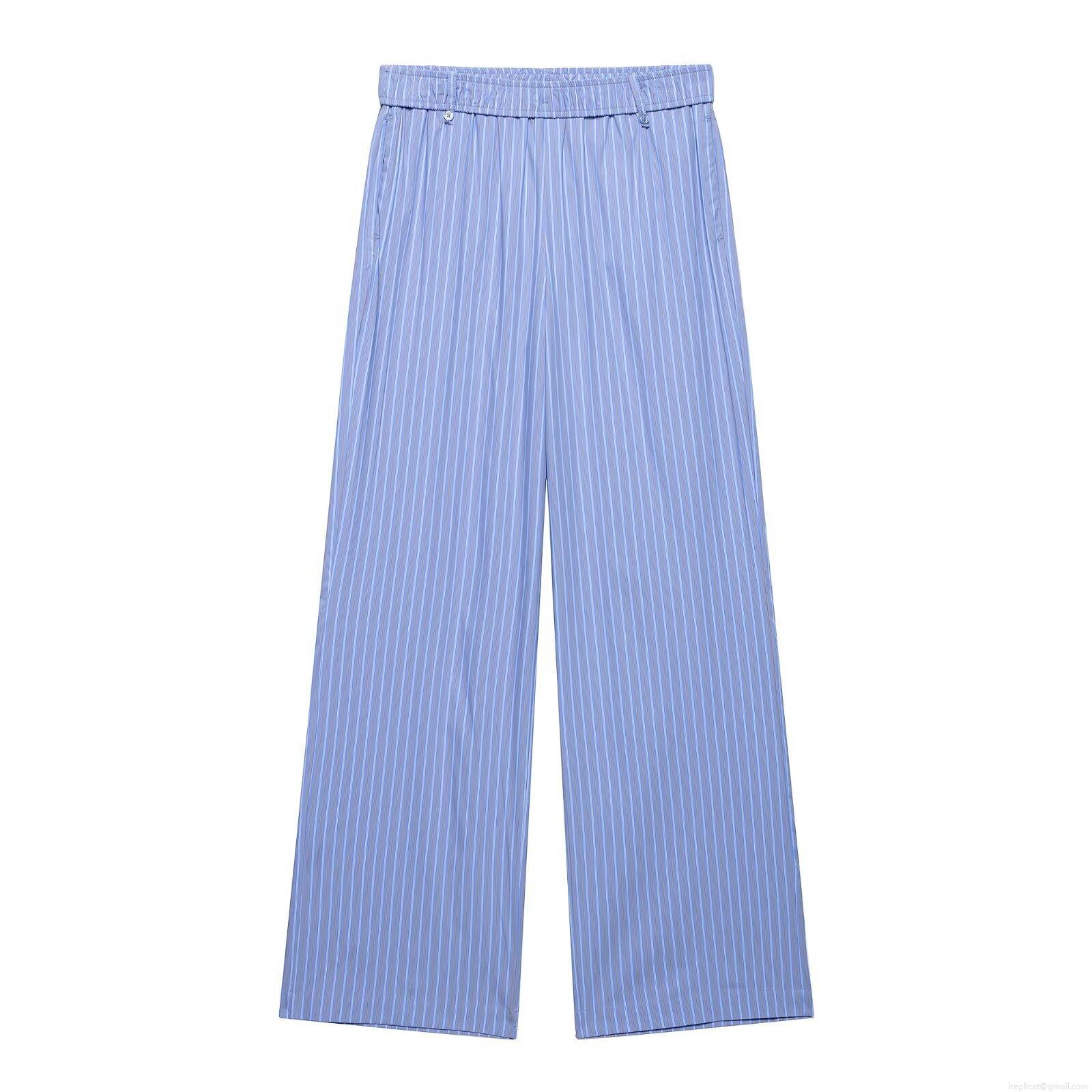 • Women's Striped Two Piece Set Sleeveless Vest Top And Wide Leg Pants Office Lady Streetwear Polyester Casual Outfits Blue White Striped Suit