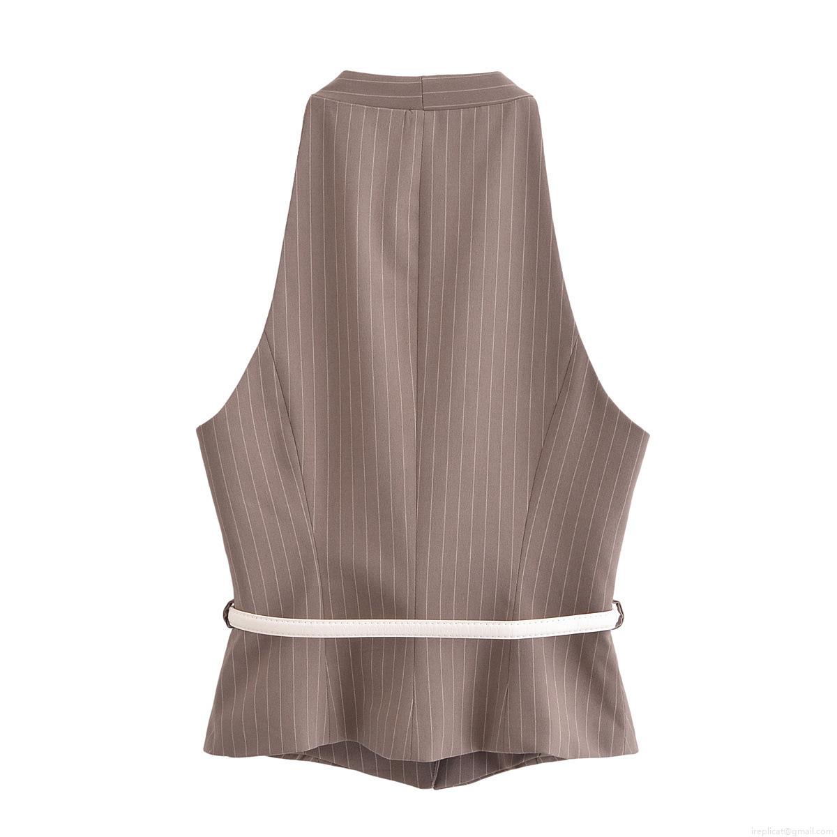 • Women's Striped V Neck Halter Vest Top And High Waist Wide Leg Pants Two Piece Set With White Belts Polyester Casual Office Streetwear Outfits