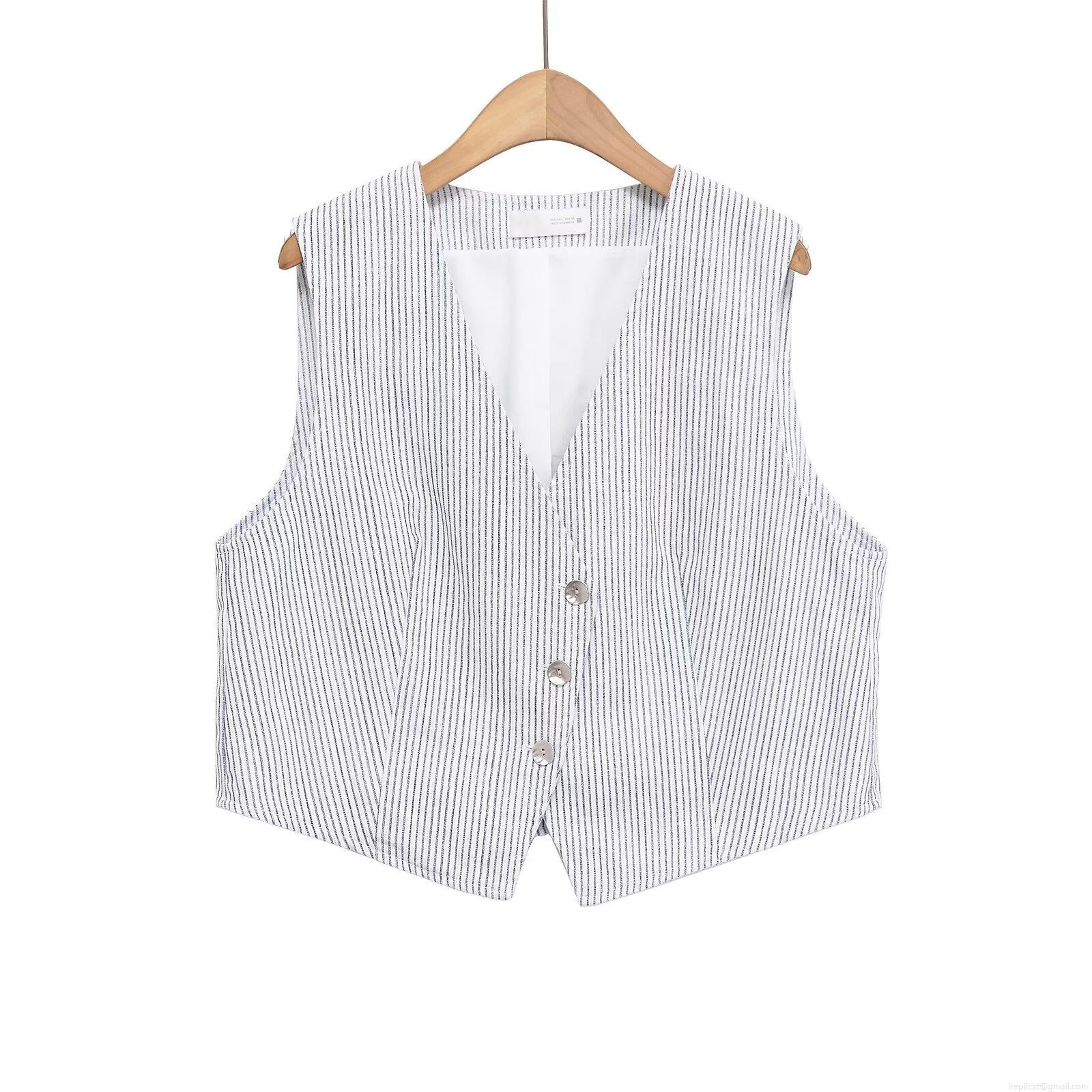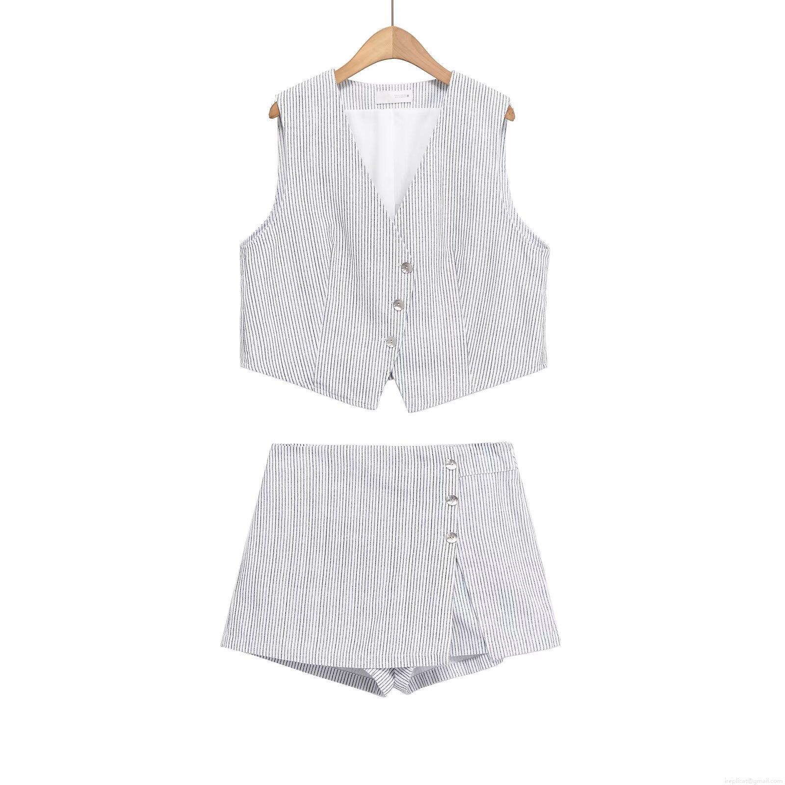 • Women's Striped Vest And Skort Two Piece Set V Neck Button Down Sleeveless Waistcoat And High Waist Shorts Streetwear Summer Outfit For Women