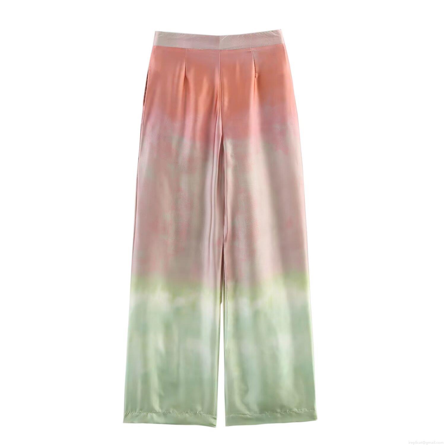 Gradient, Satin, Lace, Wide-leg, High-waisted, Watercolor Pattern