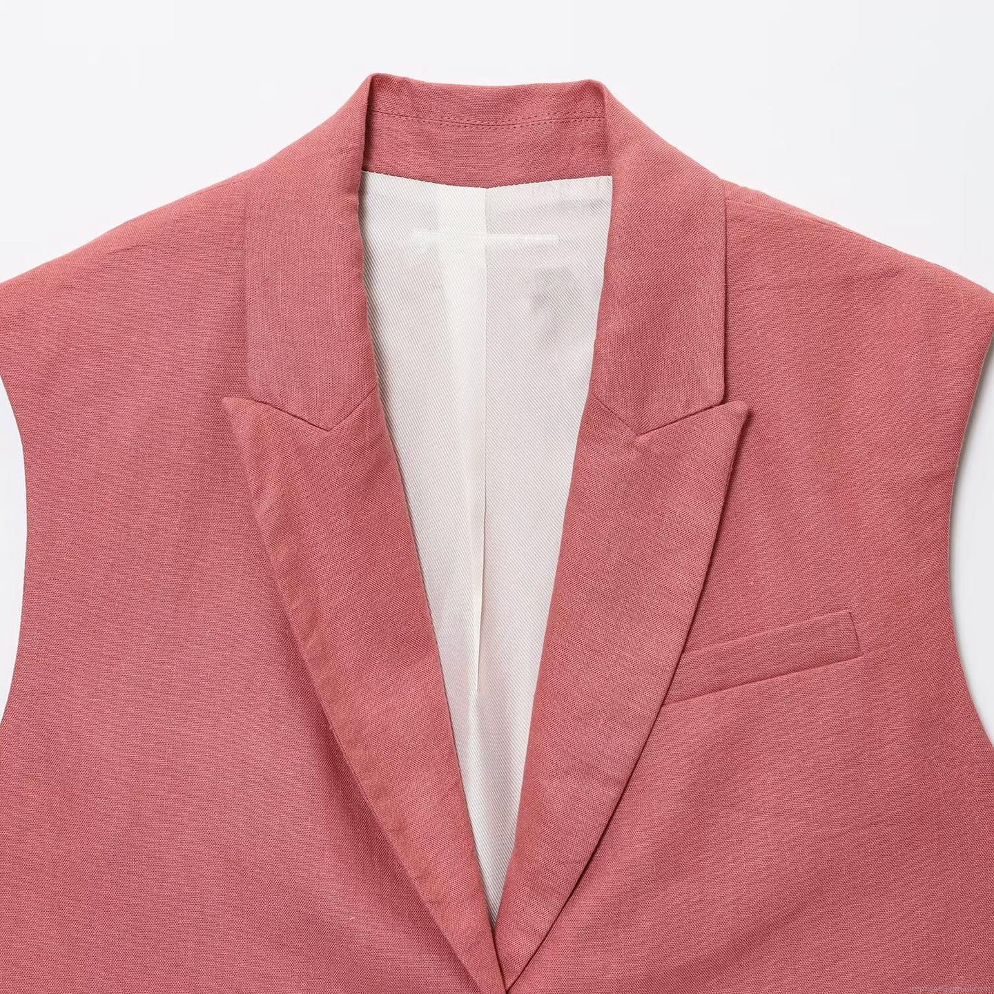 • Women's Summer 2 Piece Set Pink Sleeveless Single Button Waistcoat and High Waist Wide Leg Pants with Belt Chic Casual Office Outfit for Women