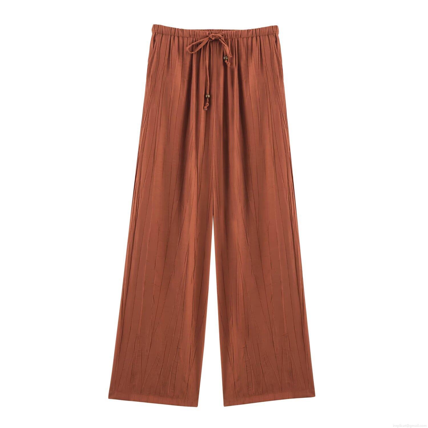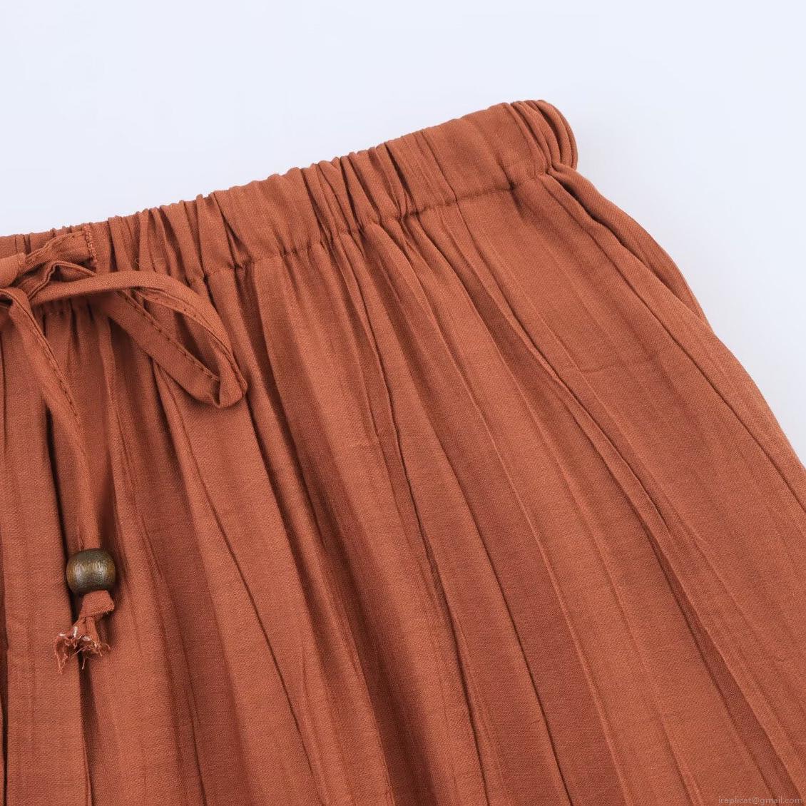 Solid Color, Color Blocking, Drawstring Design, Wooden Beads, Pleating Process, Vertical Fold Texture