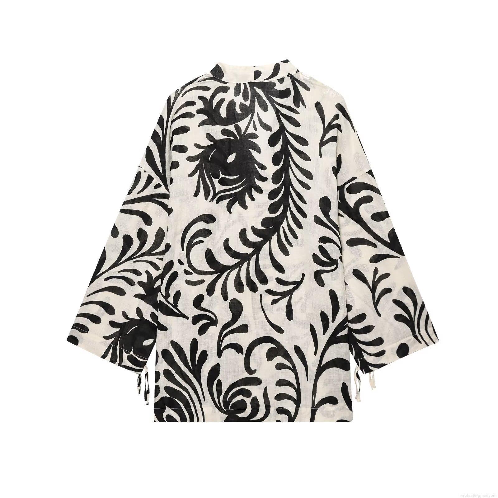 • Women's Summer Vintage Botanical Print 2-Piece Outfits Kimono Style Wrap Top and Wide Leg Pants Set Polyester Cotton Beach Vacation Streetwear