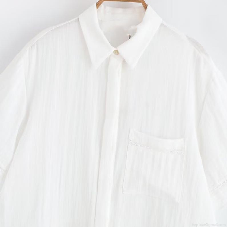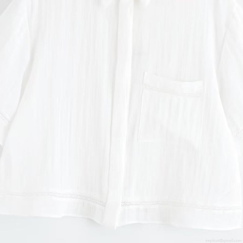 • Women's Summer White Two Piece Set Casual Short Sleeve Lapel Button Shirt With Lace Trim And High Waist Wide Leg Pants Breathable Polyester Spandex Co-ord Suit