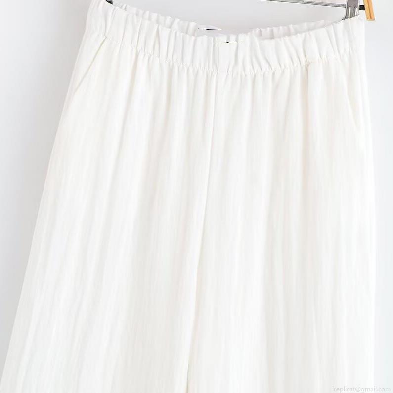 Solid Color, Hollow Out, Lace Trim, Wide-leg, Vertical Texture