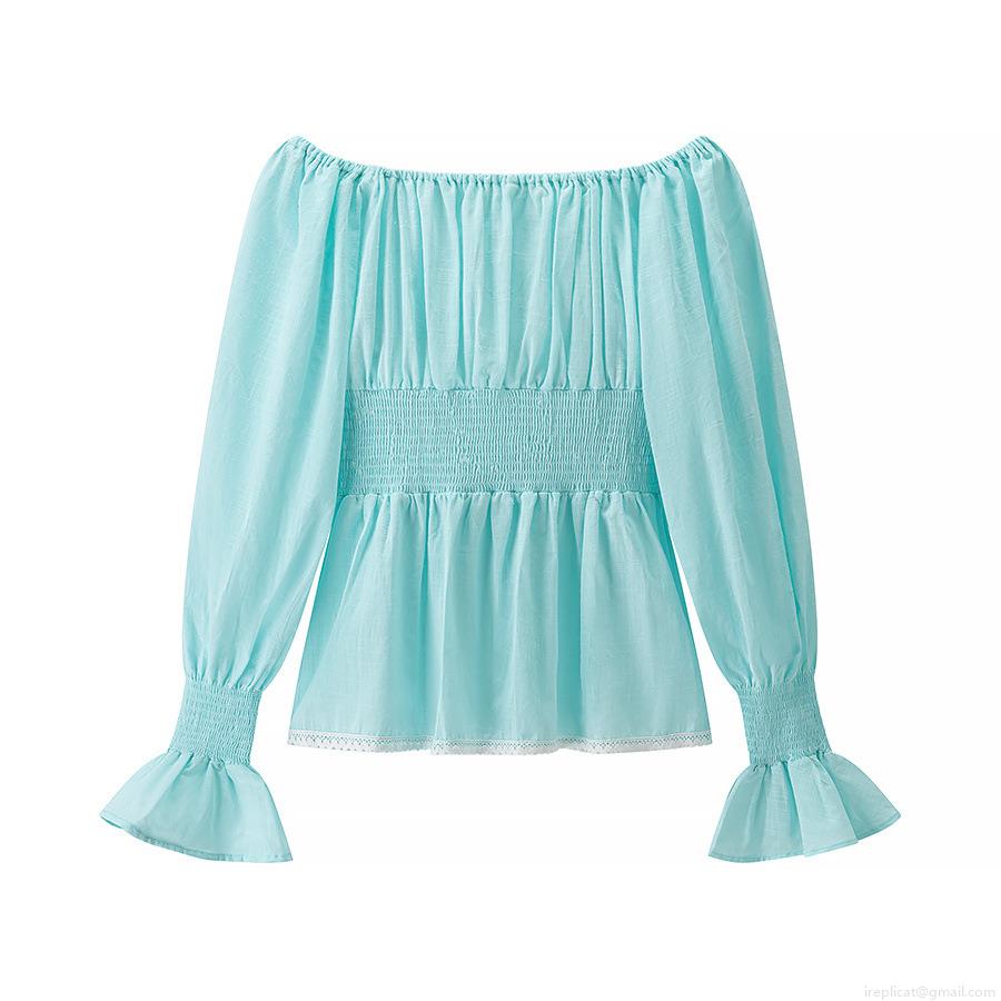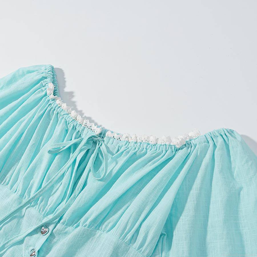 Solid Color, Lace Trim, Drawstring, Lantern Sleeves, Off-shoulder, Heart-shaped Buttons