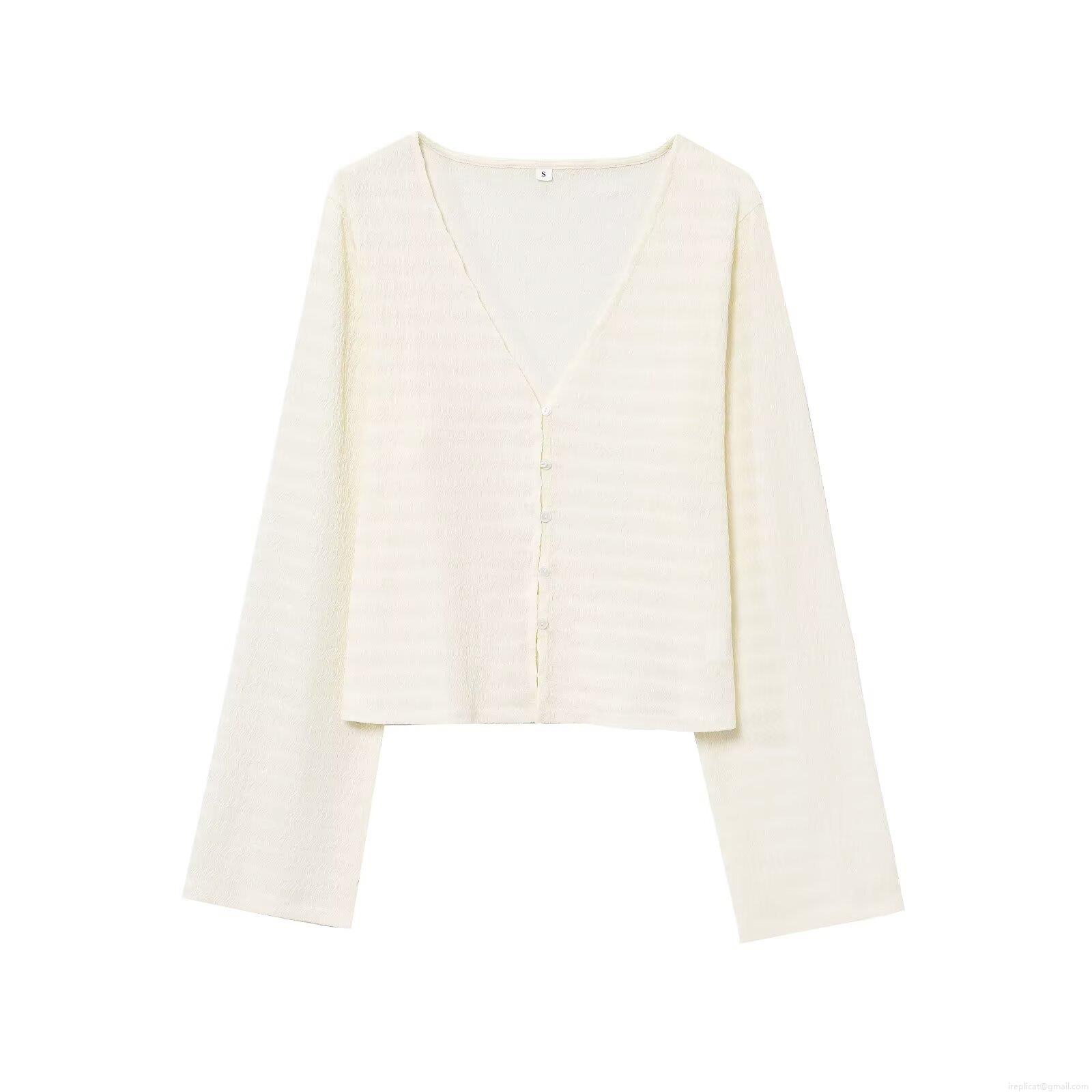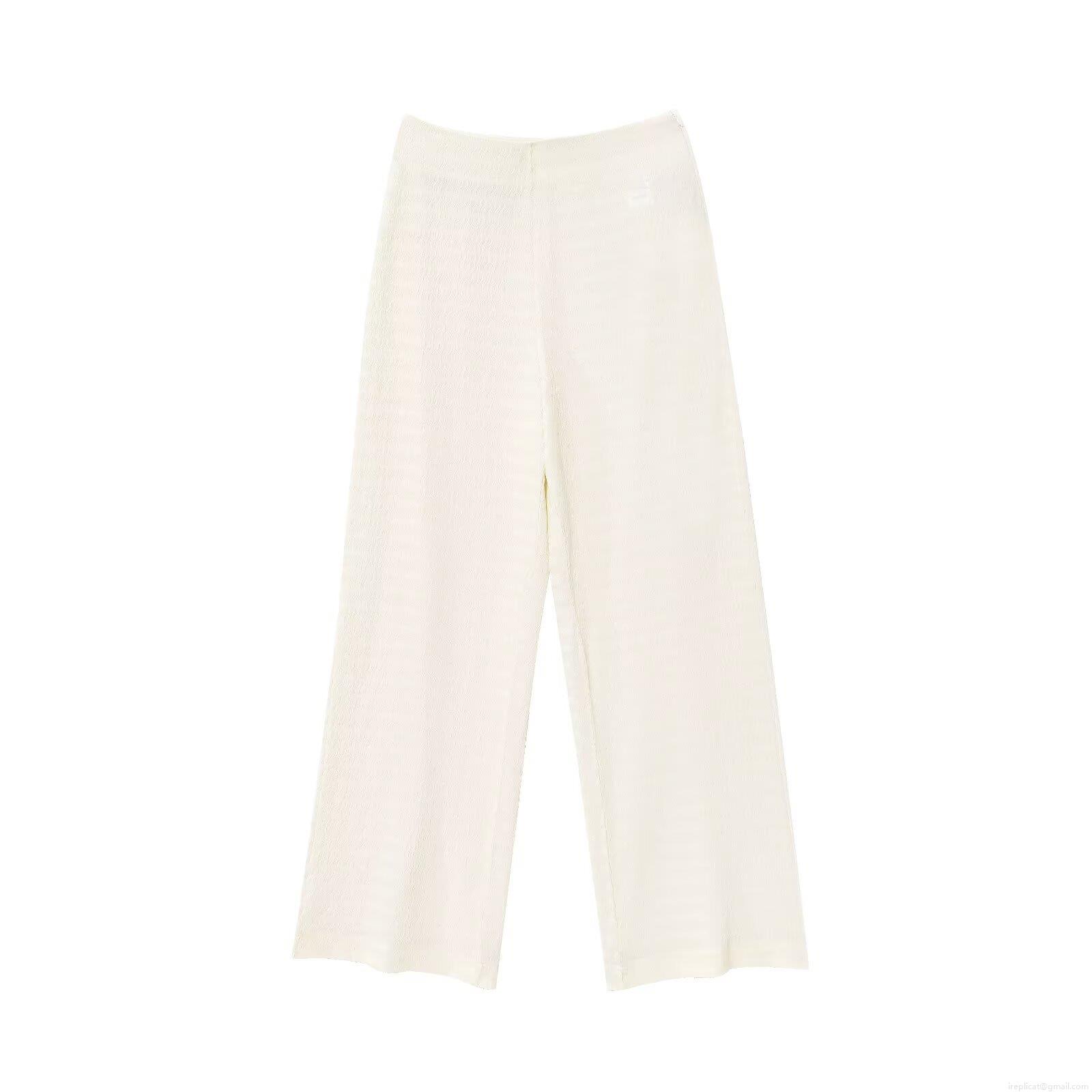• Women's Three Piece Set Ribbed Knit Button Cardigan Vest And Wide Leg Pants Solid Color Loungewear Streetwear Cream White Comfortable Outfit For Women