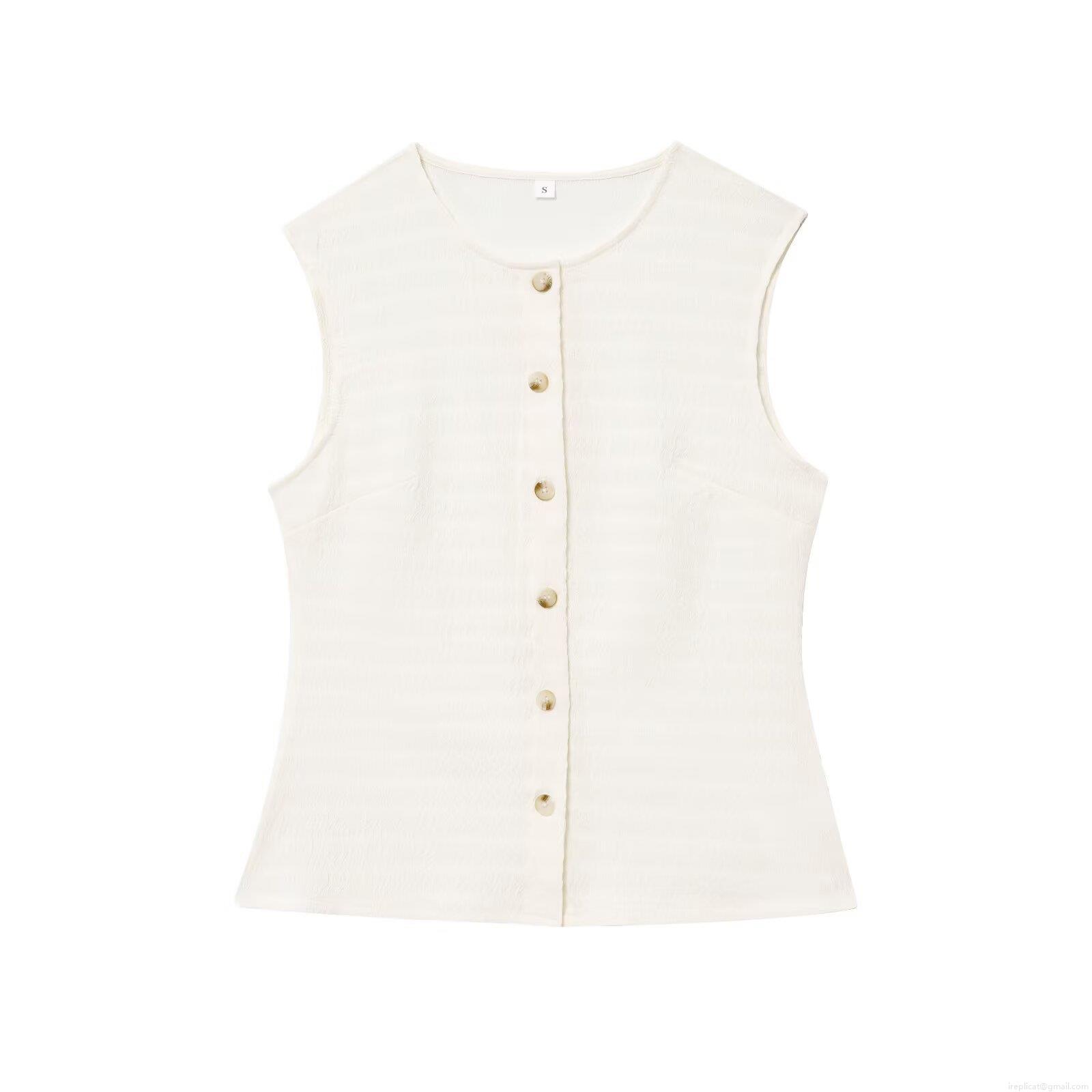 Solid Color, Splice, Buttons, Vertical Stripe Texture