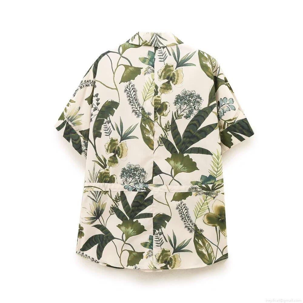 • Women's Tropical Floral Print Two Piece Set Short Sleeve Lapel Button Up Shirt And High Waisted Wide Leg Pants Vacation Casual Outfits 100% Polyester Comfortable Beachwear