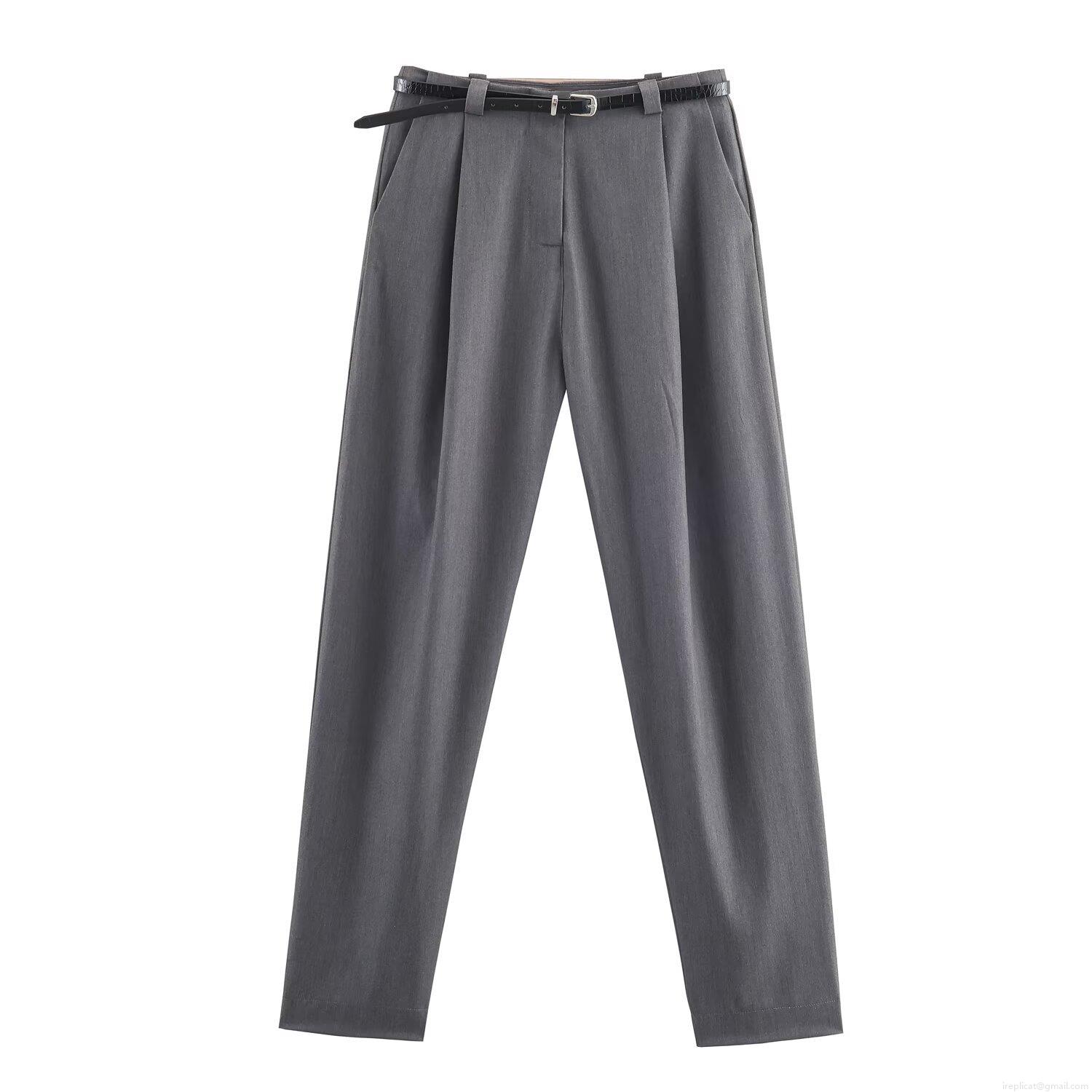• Women's Two Piece Blazer Suit Set Double-Breasted Grey Blazer Jacket With Notch Lapel And Matching High Waist Straight Leg Pants With Belt Business Casual Office Outfits Streetwear