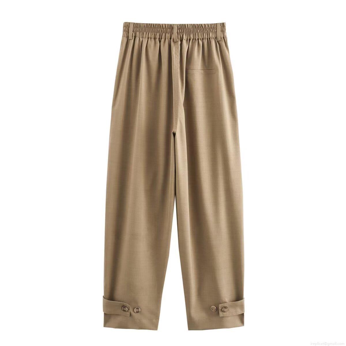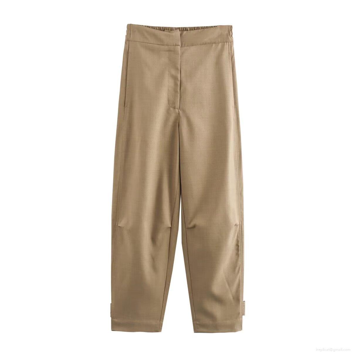• Women's Two Piece Casual Outfits 100% Polyester Woven Sleeveless Waist Tie Vest Top And High Waist Straight Leg Pants Set Khaki Solid Color Streetwear Commuter Suit
