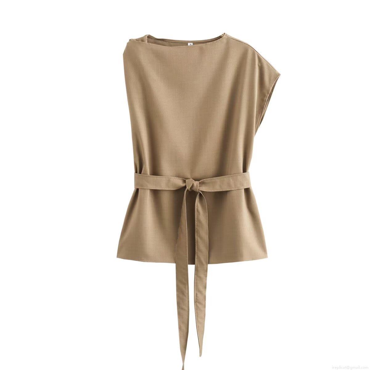 Solid Color, Elastic Waistband, High-waisted, Waist Tie, Asymmetrical Vest