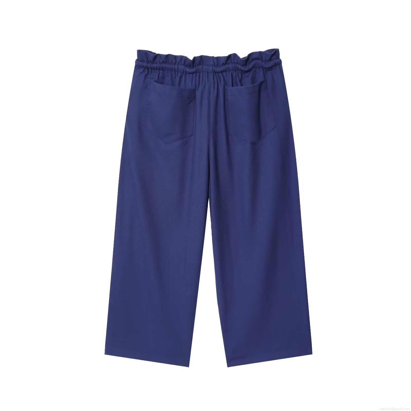• Women's Two Piece Casual Set Solid Color Button Down Shirt And Elastic Waist Wide Leg Pants Set Loose Loungewear Outfit Streetwear For Women Navy Blue