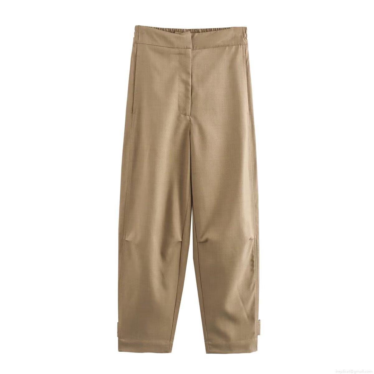 • Women's Two Piece Casual Set Woven 100% Polyester Sleeveless Round Neck Belted Top and Wide Leg Pants Khaki Solid Streetwear Summer Outfit For Women