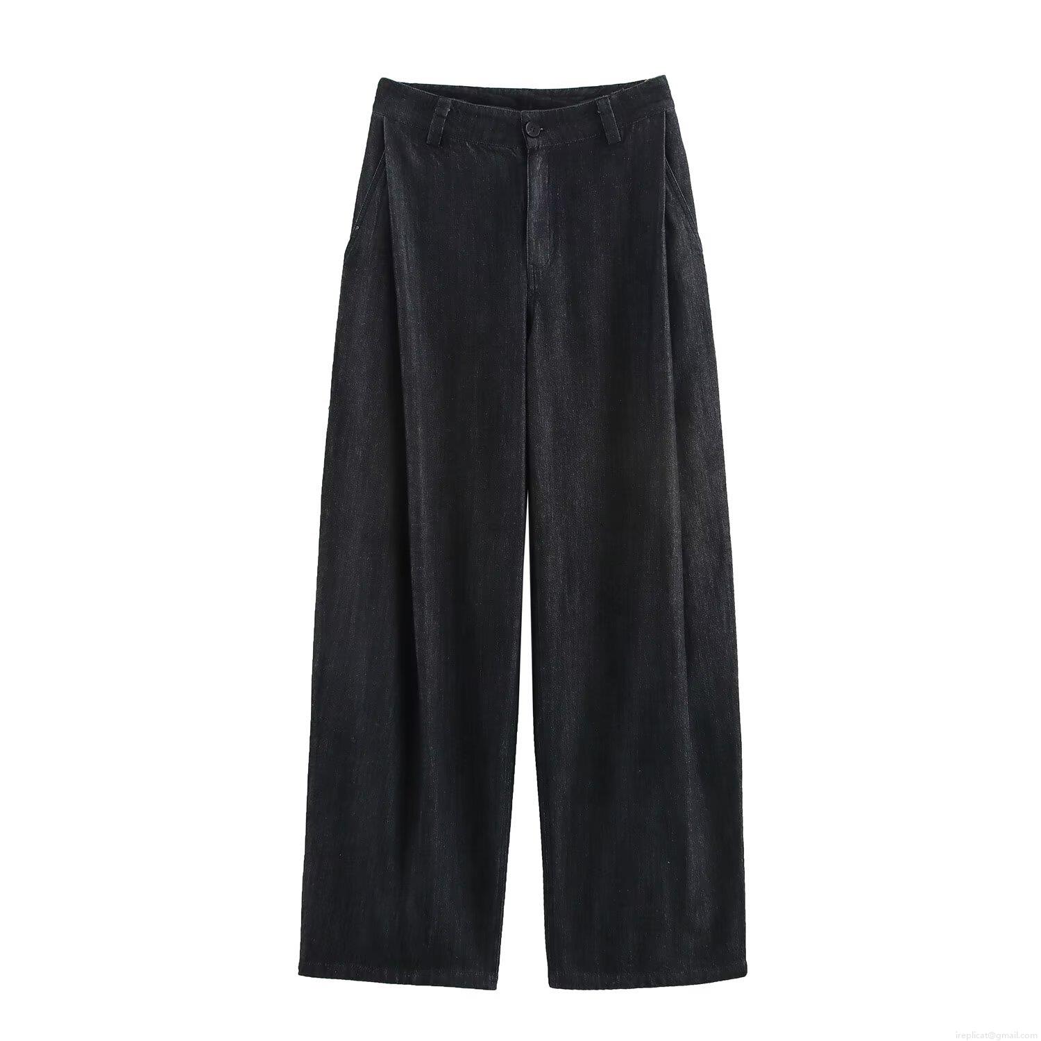 • Women's Two Piece Denim Set Casual Long Sleeve Contrast Stitching Lapel Jacket With Pockets And High Waist Wide Leg Pants Streetwear Outfit For Women