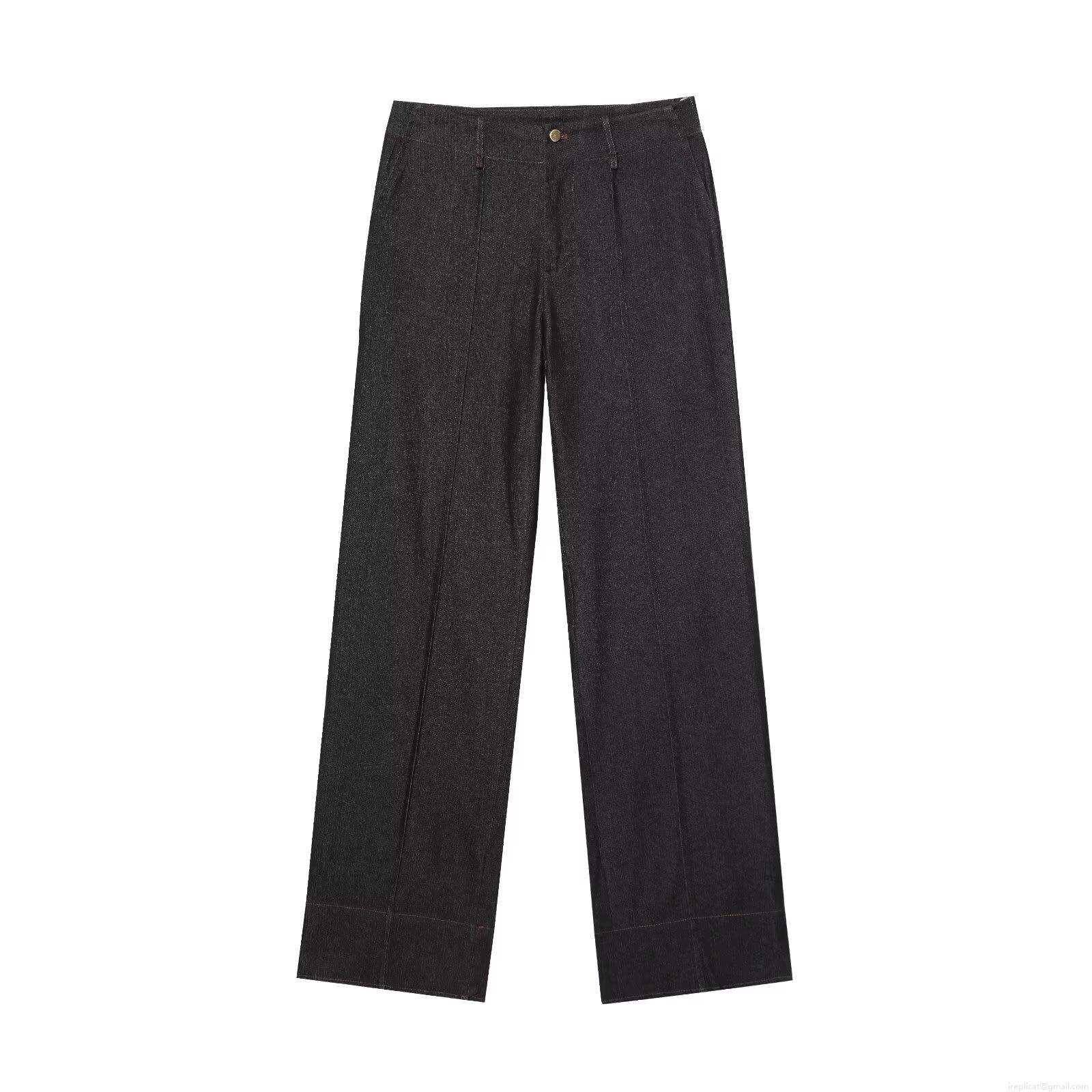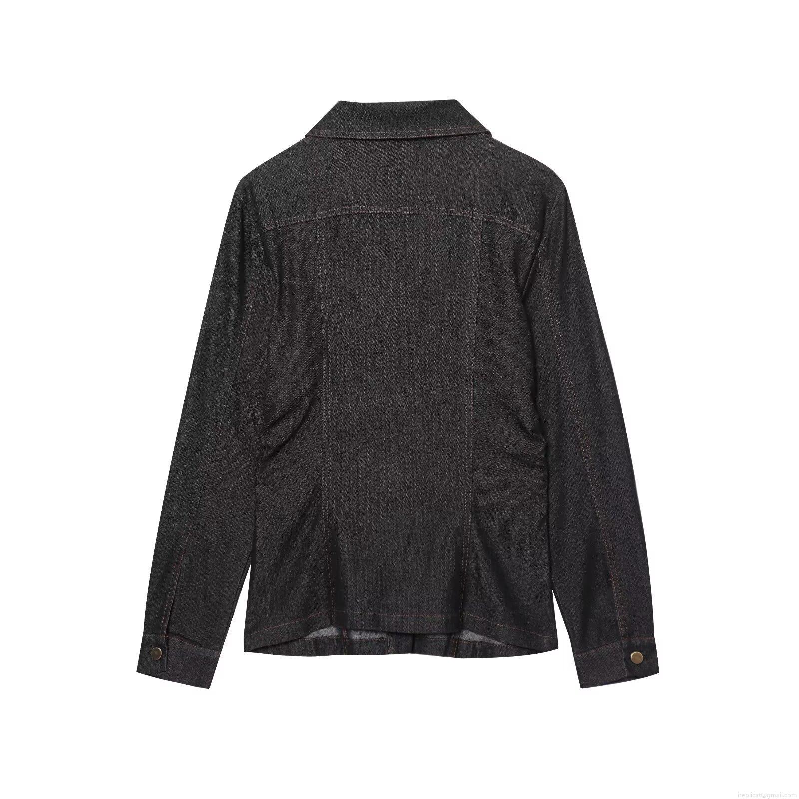 • Women's Two Piece Denim Set Long Sleeve Button Up Shirt High Waist Wide Leg Jeans Dark Grey Casual Streetwear Outfits For Women