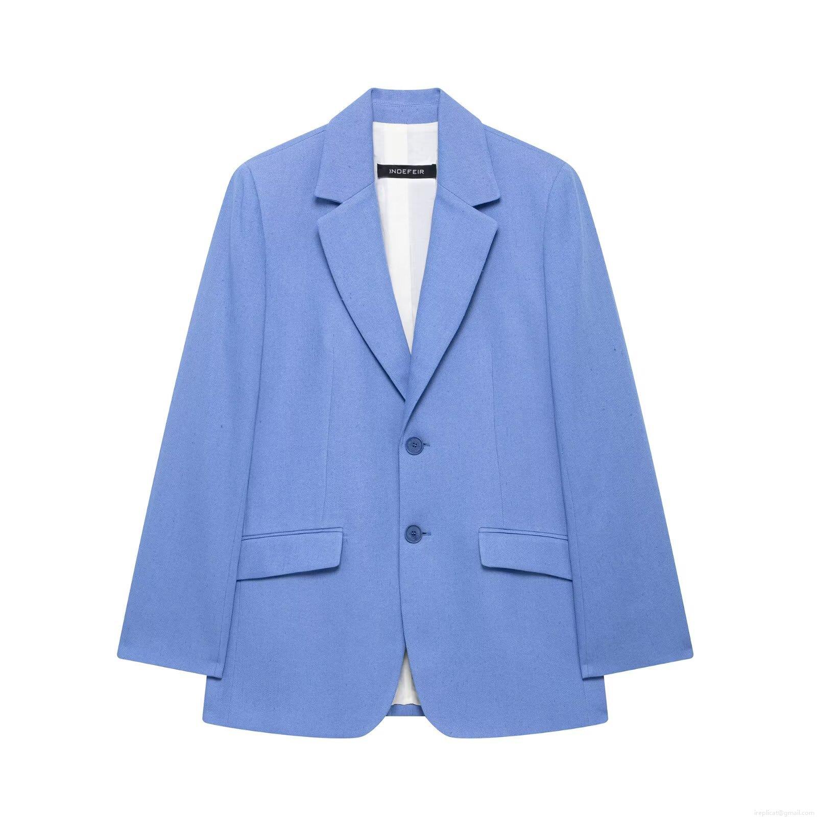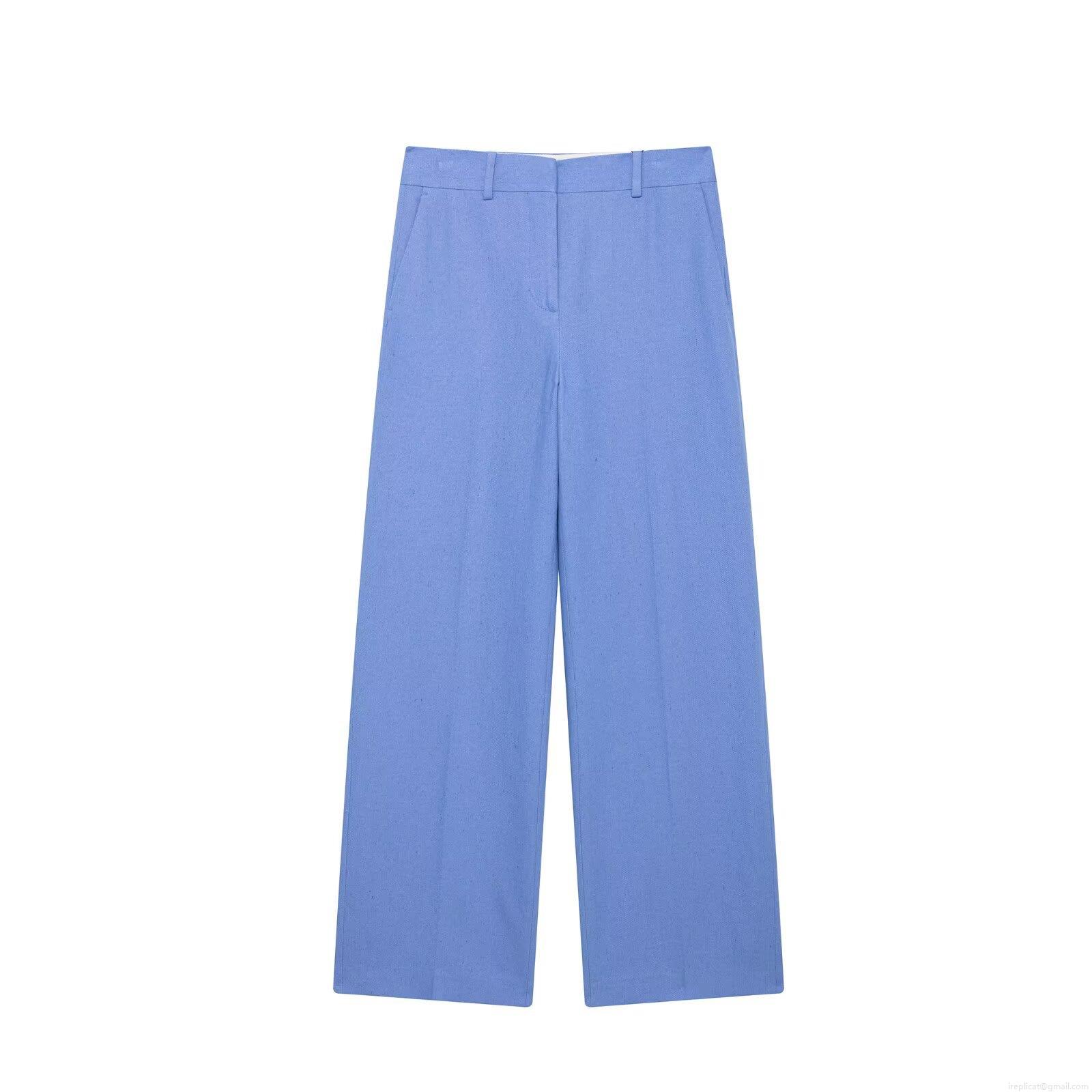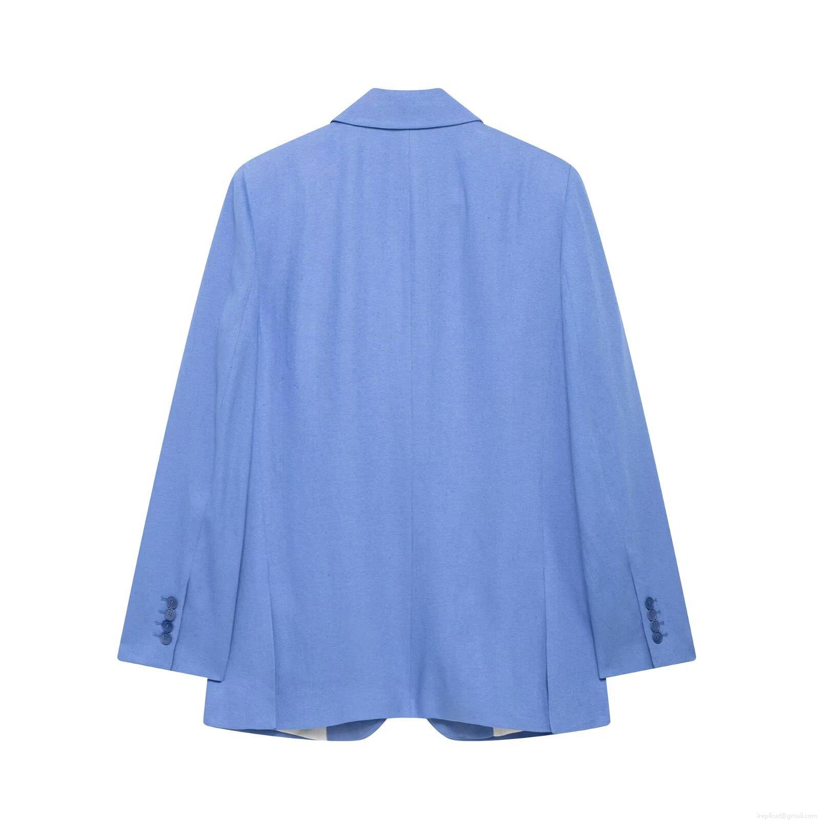 • Women's Two Piece Linen Blend Suit Set Oversized Single Breasted Blazer Jacket And High Waist Wide Leg Long Pants Solid Color Streetwear Office Outfits