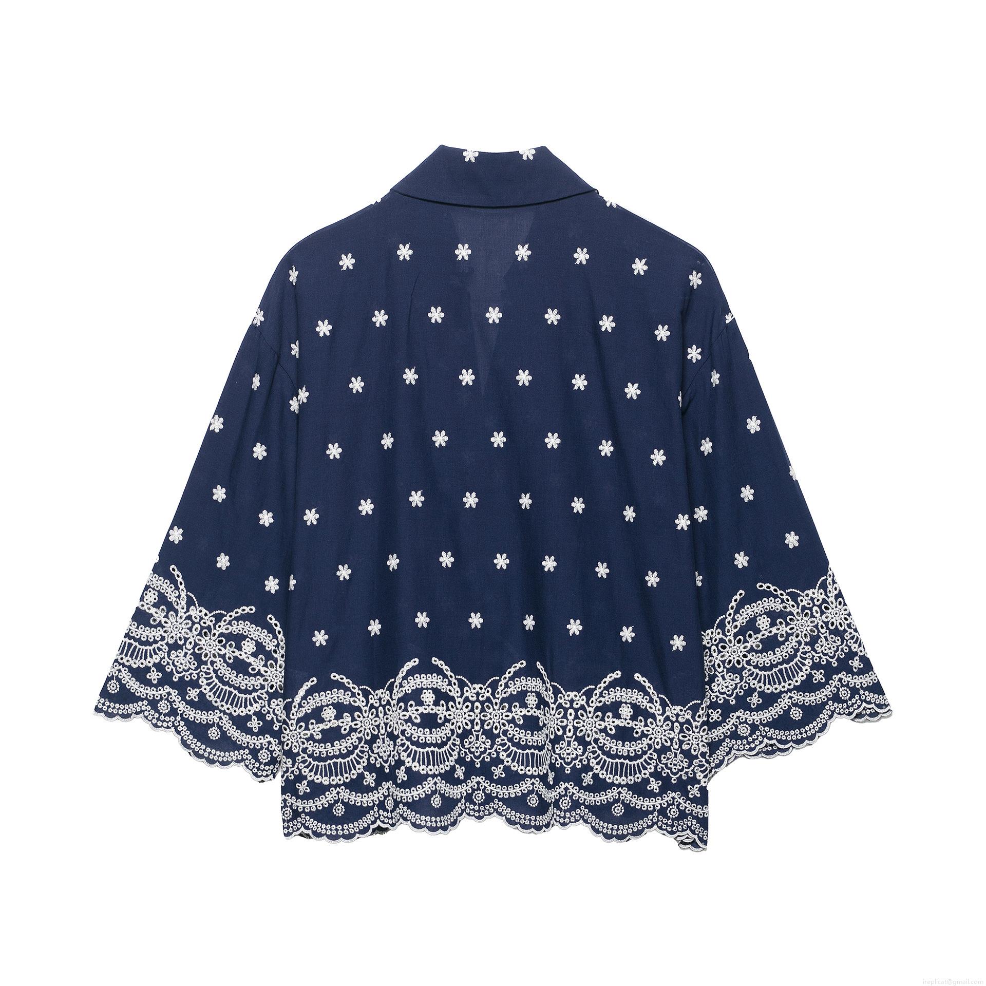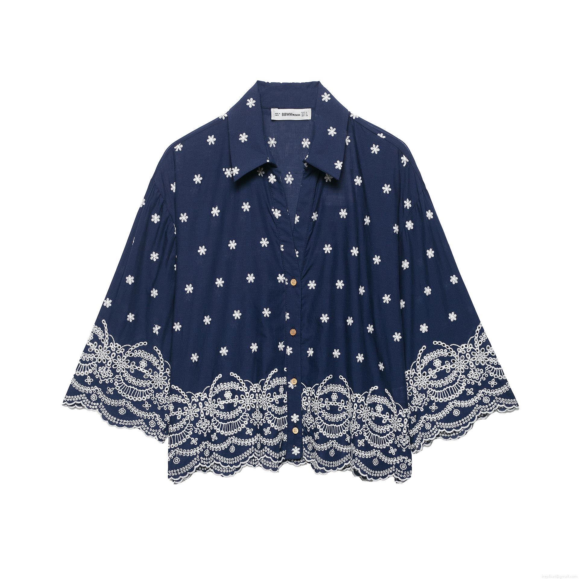 Embroidery, Hollow Out, Flowers, Lace Trim, Wooden Buttons, Fan-shaped Edge, Floral Embroidery