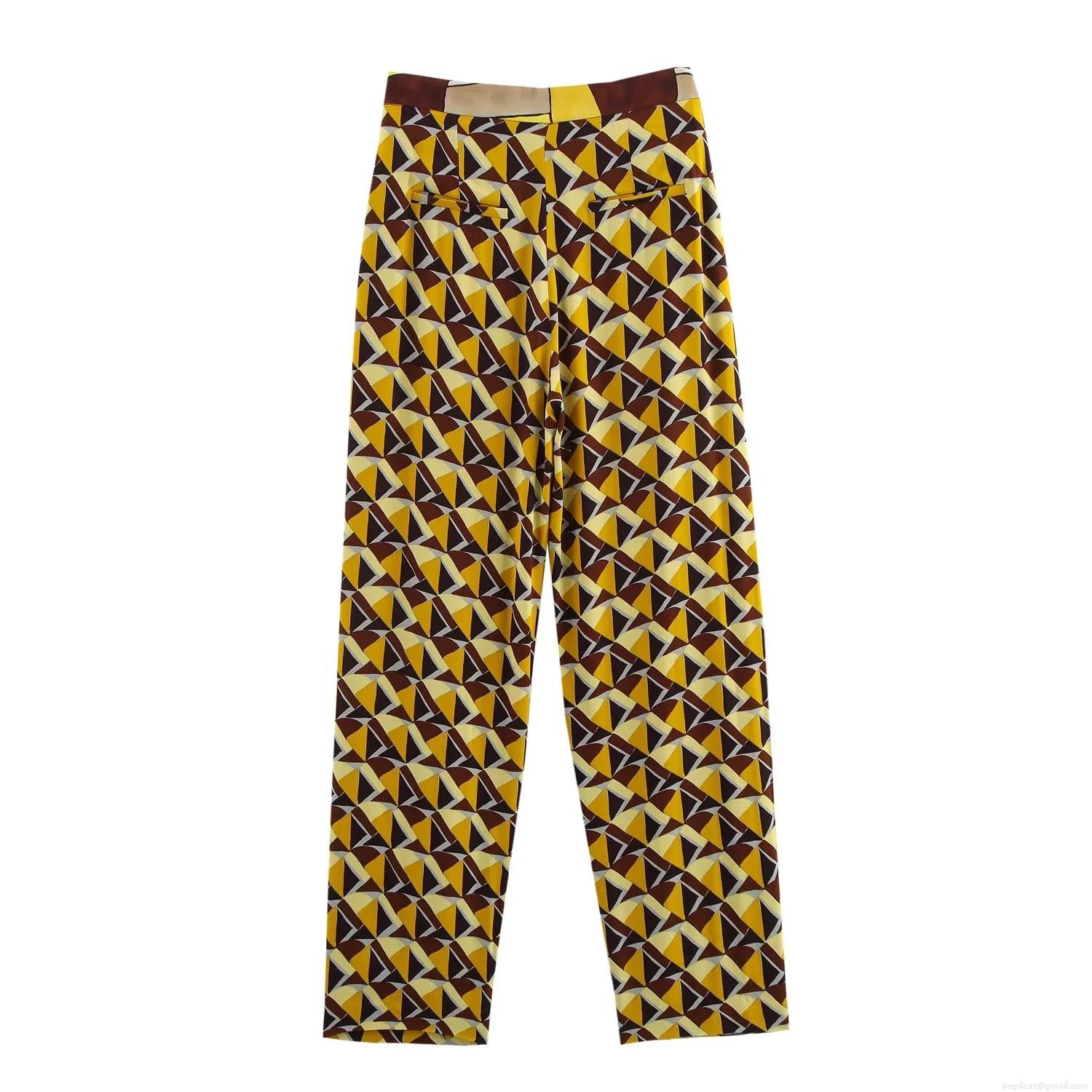 • Women's Two Piece Outfits Geometric Print Long Sleeve Button Down Shirt And Straight Leg High Waist Trousers Casual Loose Matching Set For Ladies
