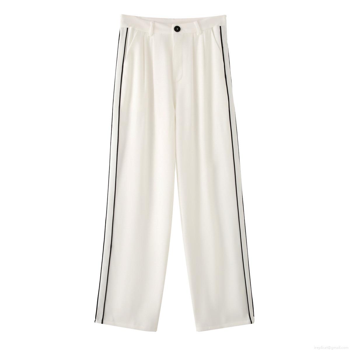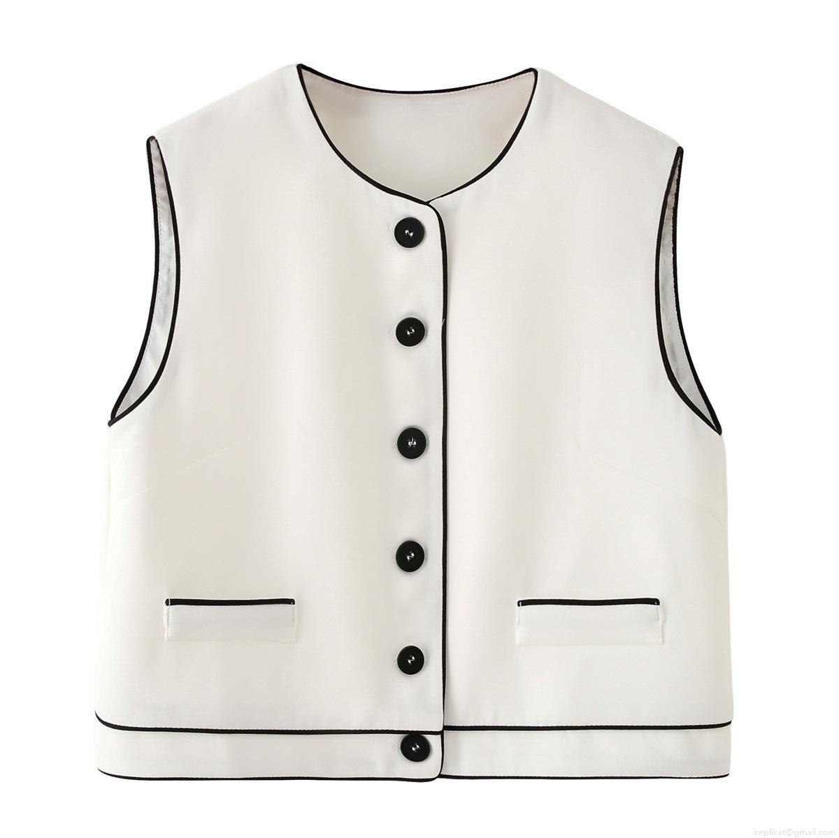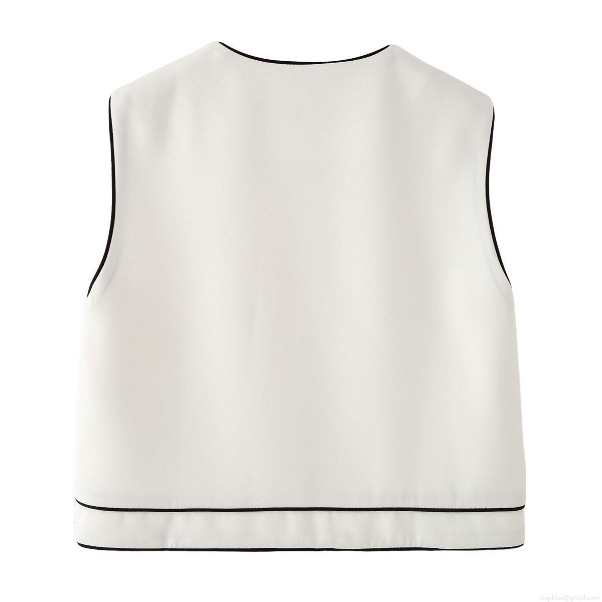 • Women's Two Piece Pants Set Contrast Color Binding Sleeveless Round Neck Vest And High Waist Wide Leg Trousers Casual Western Streetwear Outfits