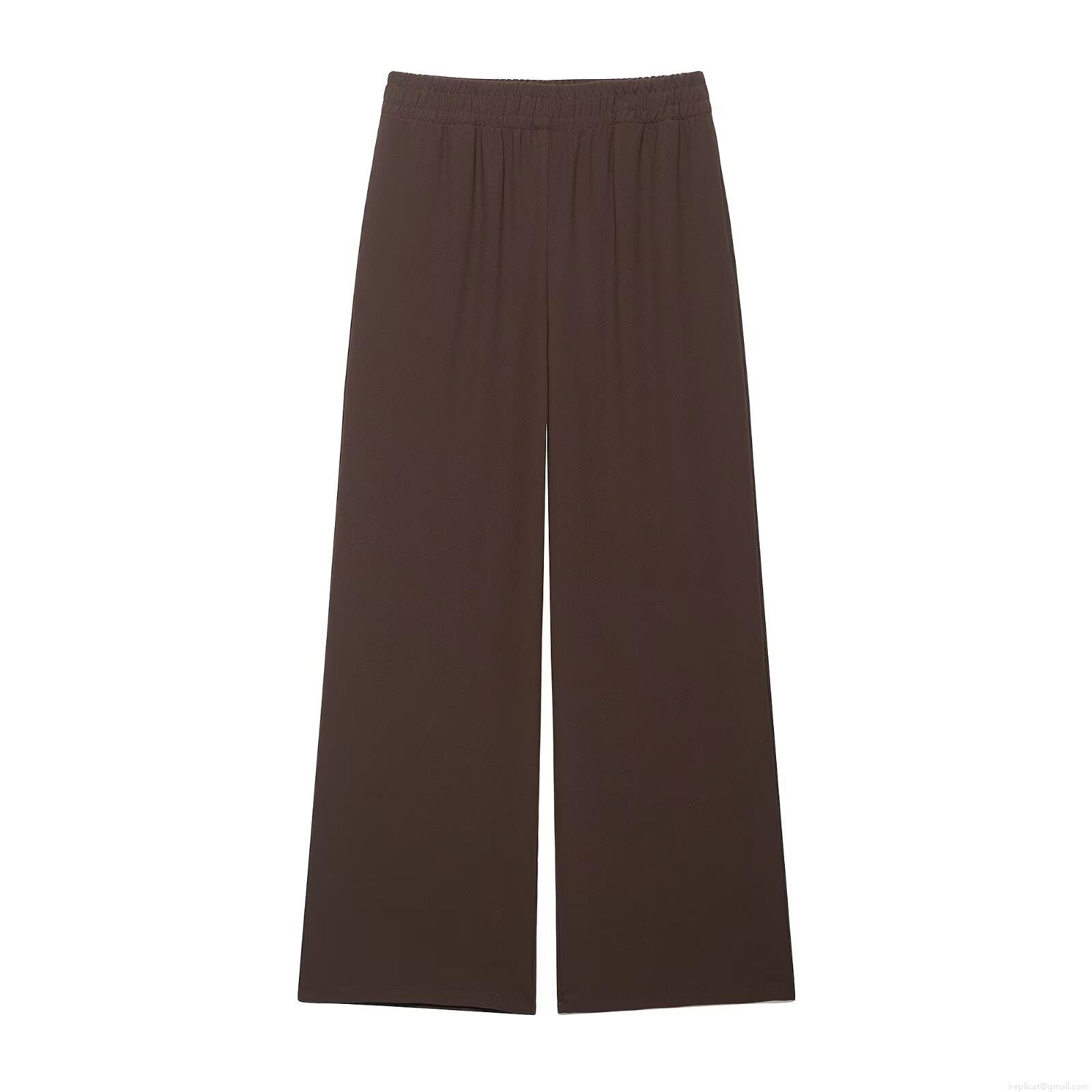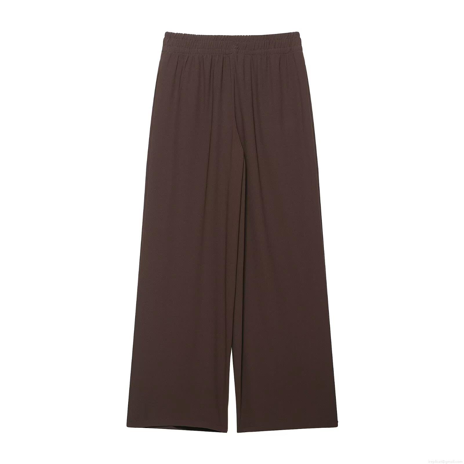 • Women's Two Piece Pants Set Long Sleeve Tie Front Crepe Shirt and High Waist Wide Leg Trousers Casual Solid Color Autumn Outfits