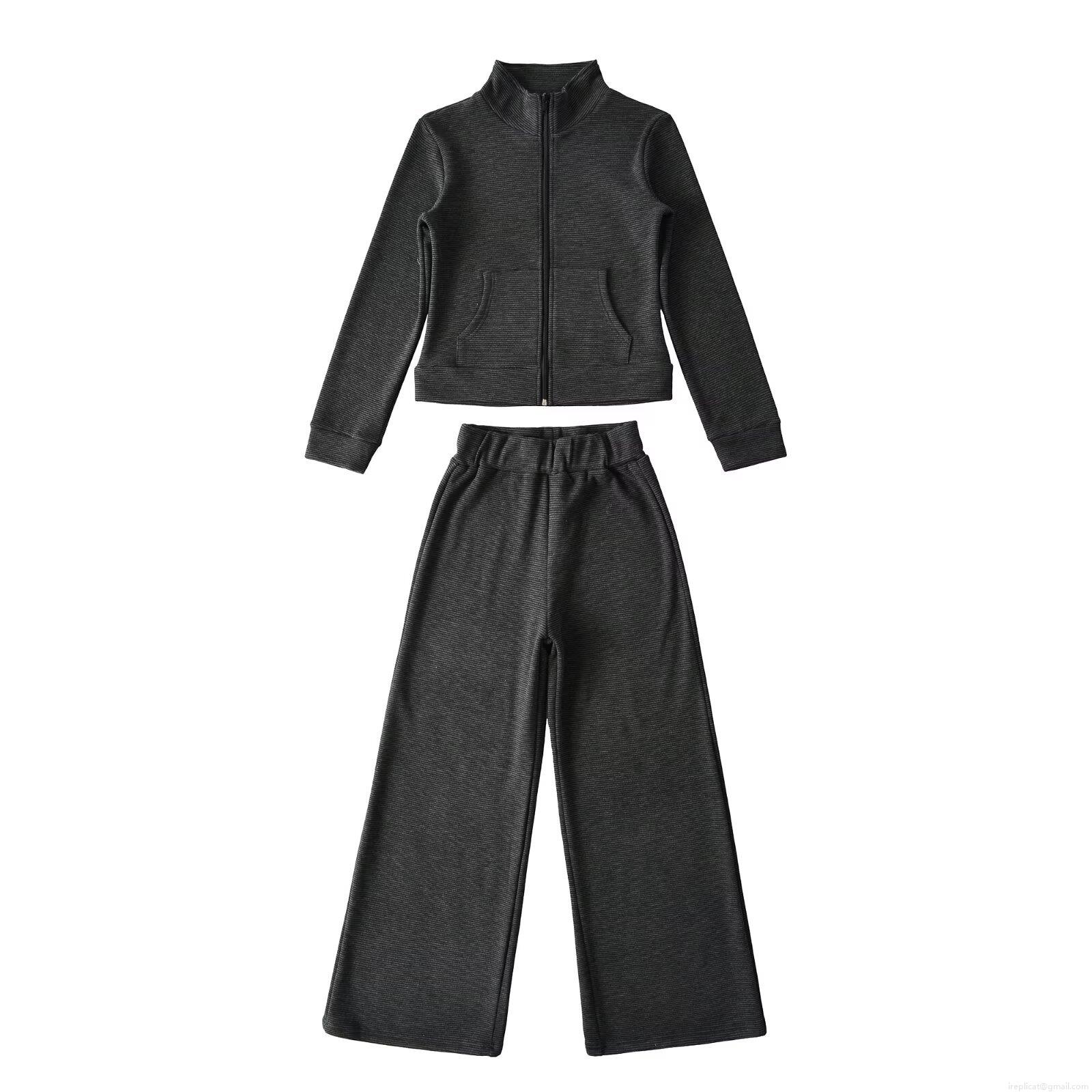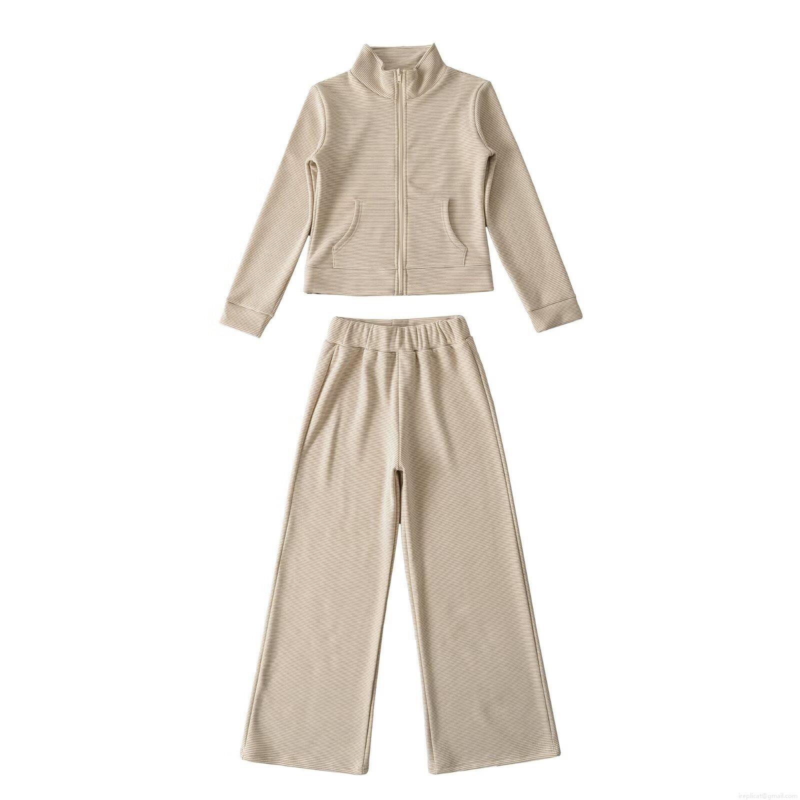Women's Two Piece Pants Set Ribbed Fleece Lined Striped Sweatshirt And Wide Leg Pants Set Casual Streetwear Autumn Winter Outfit For Women