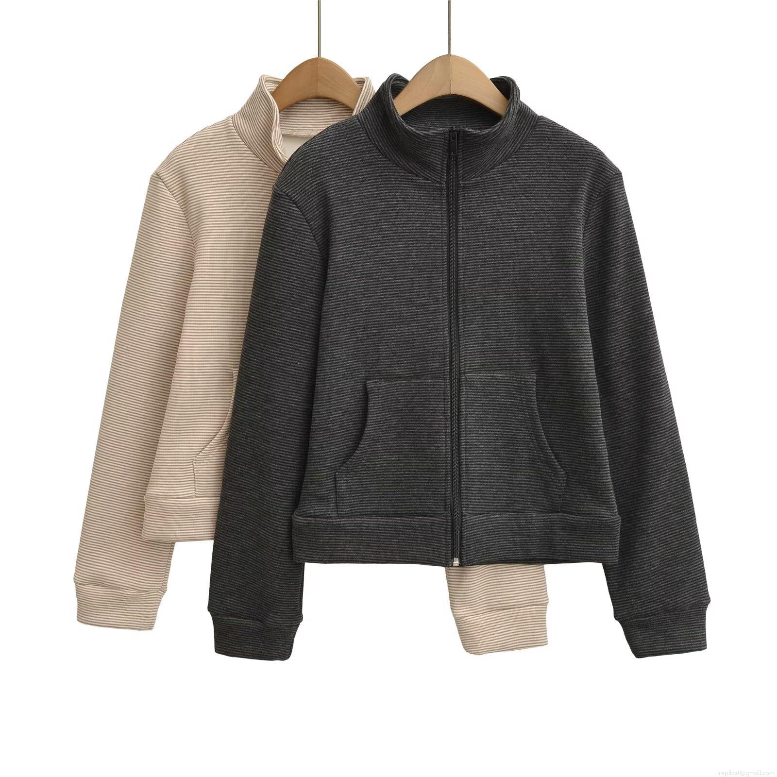 Splice, Pinstripes, Color Blocking, Zipper, Stand-up Collar, Rough Texture