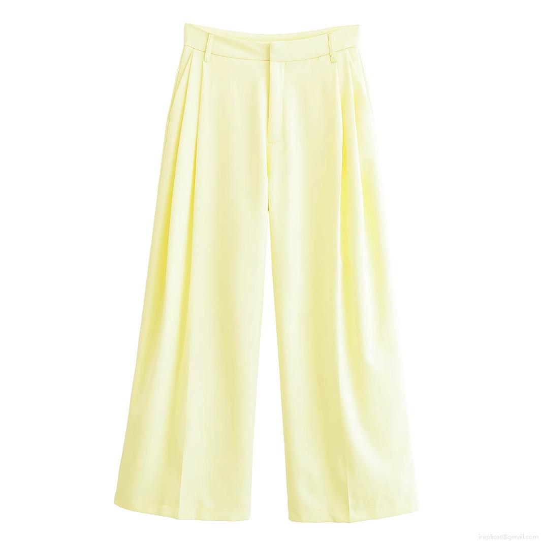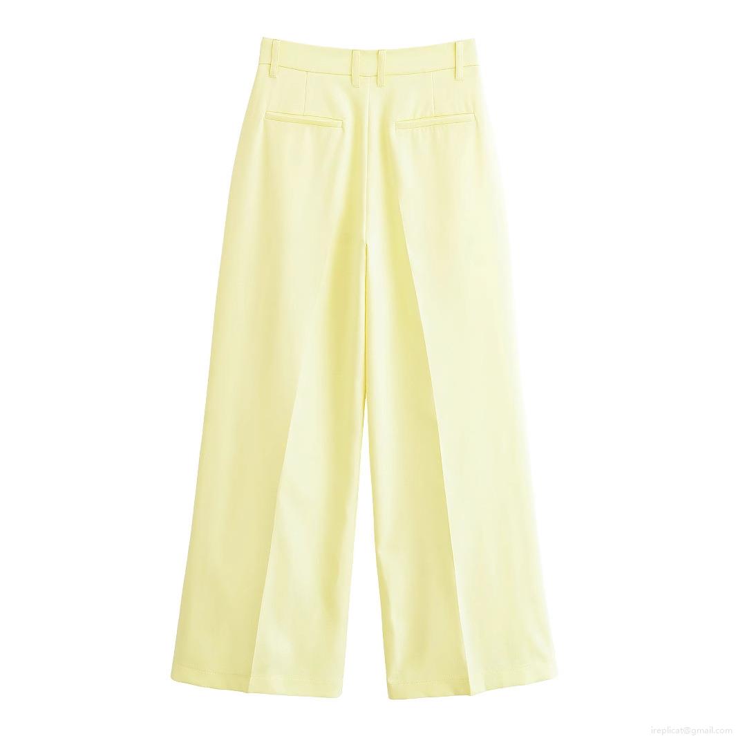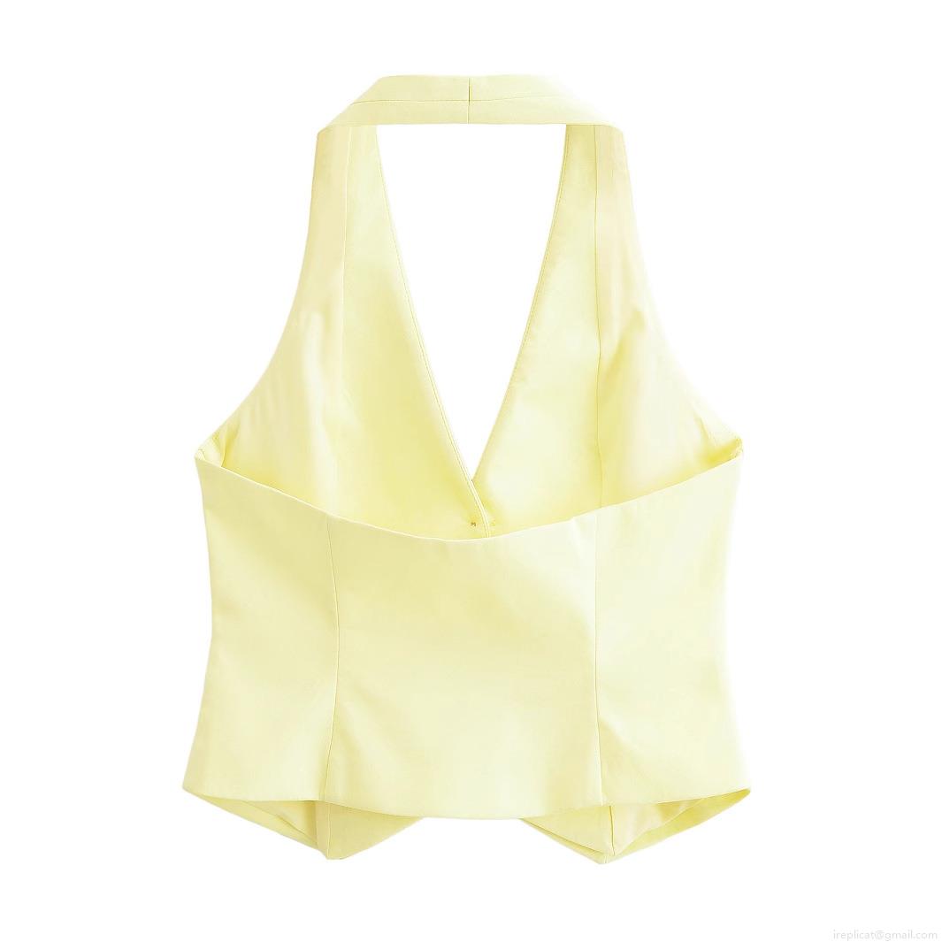 • Women's Two Piece Set 100% Polyester Halter Neck Button Vest And High Waist Wide Leg Pants Solid Color Light Yellow Casual Streetwear Summer Outfit For Women