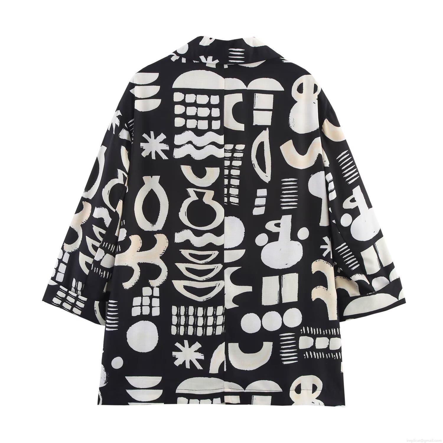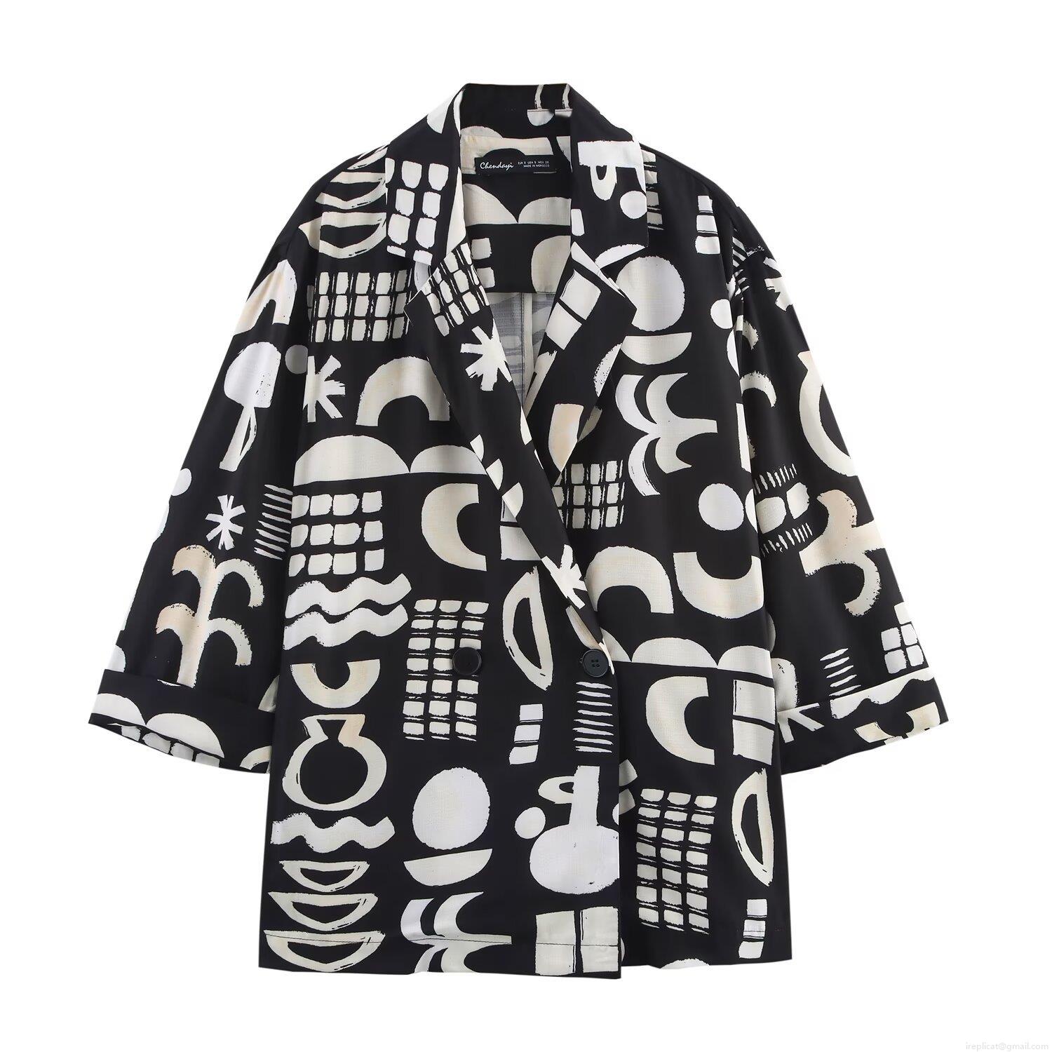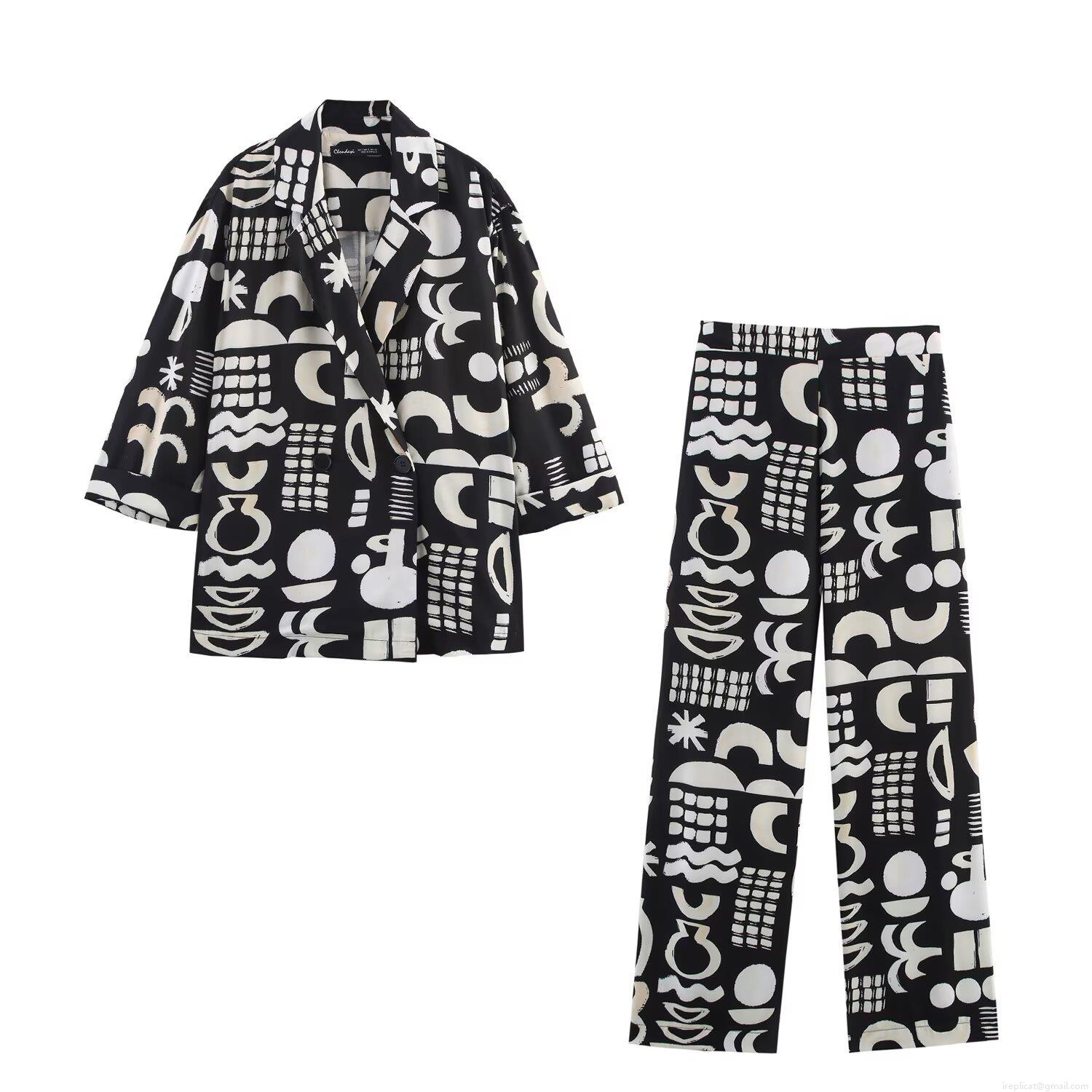 • Women's Two Piece Set Abstract Geometric Print Blazer and Straight Leg Pants Casual Suit Long Sleeve Jacket High Waist Trousers Polyester Outfits