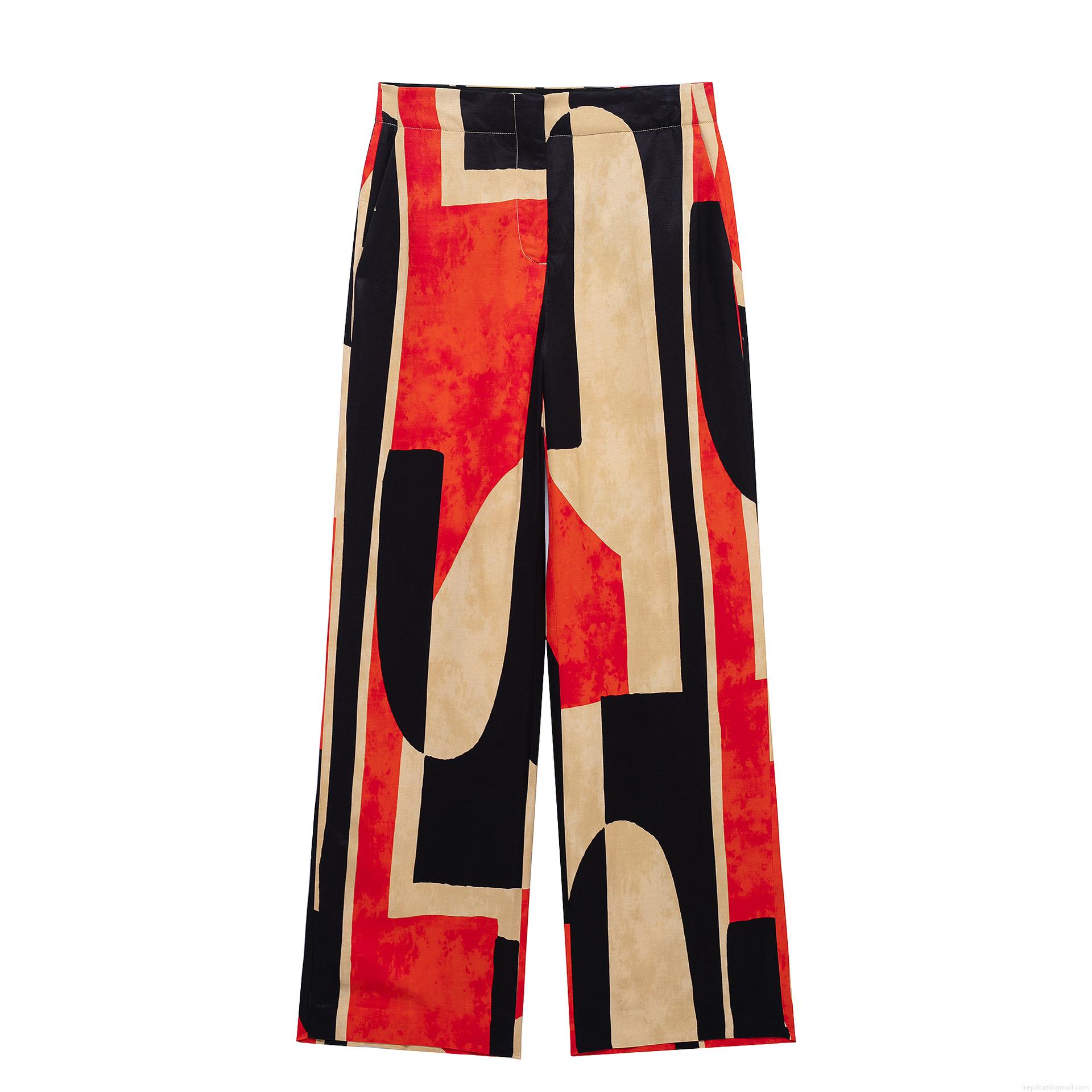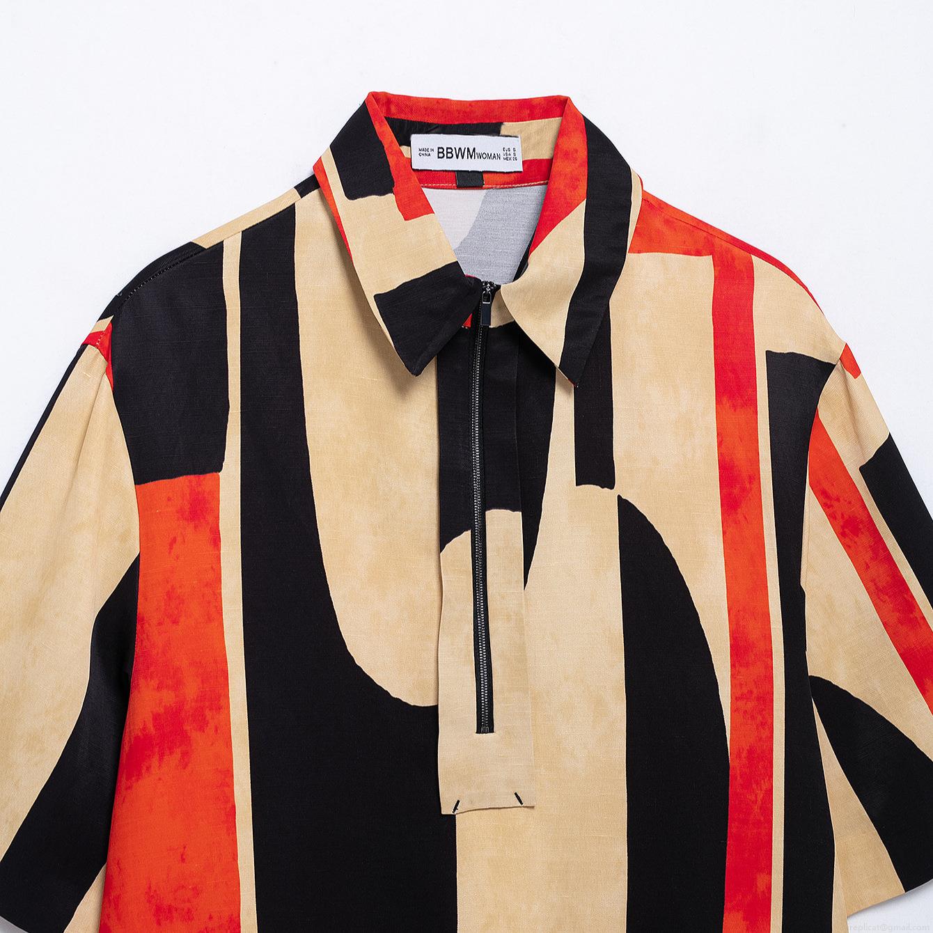 • Women's Two Piece Set Abstract Geometric Print Half Zip Short Sleeve Shirt And High Waist Wide Leg Trousers Casual Commuter Summer Outfit