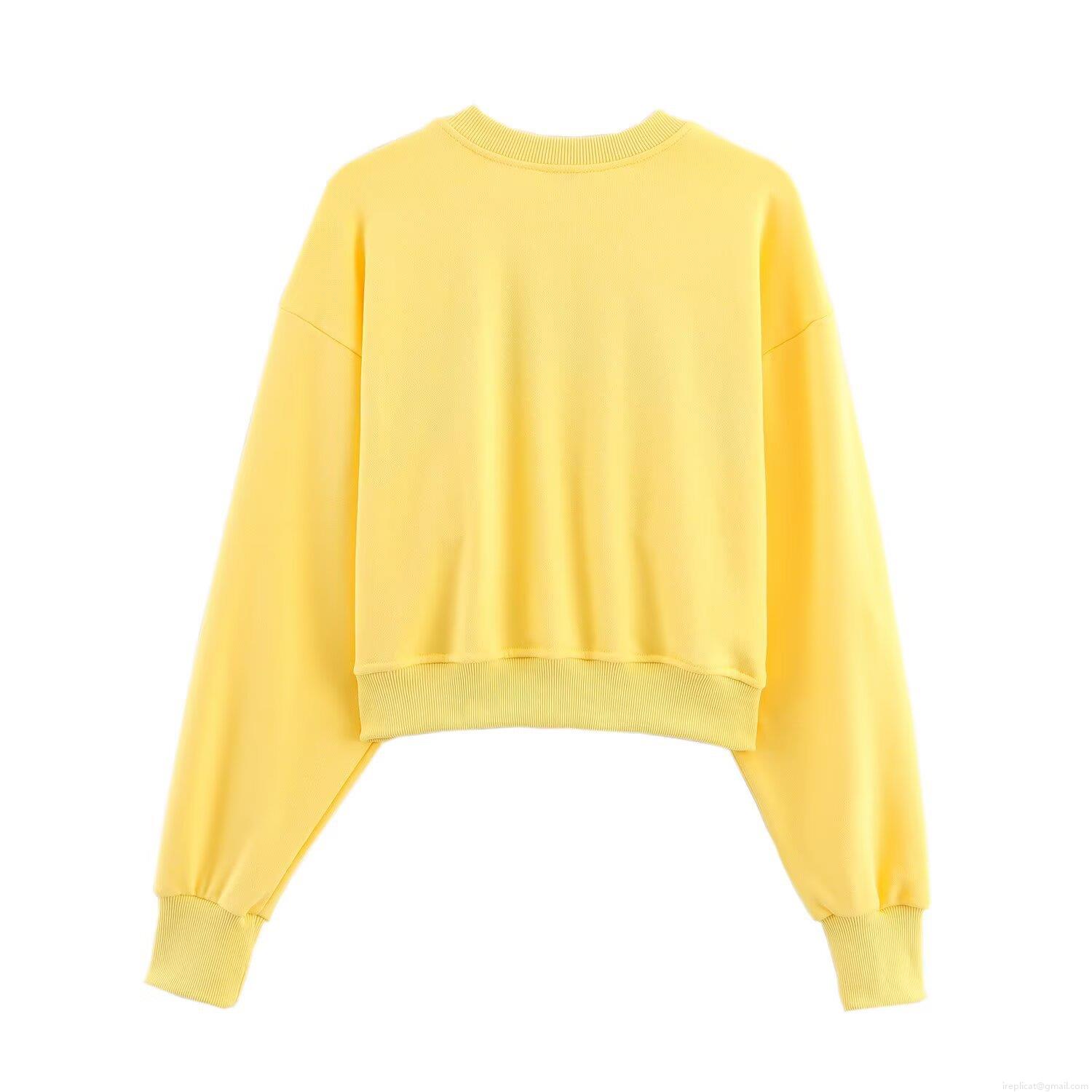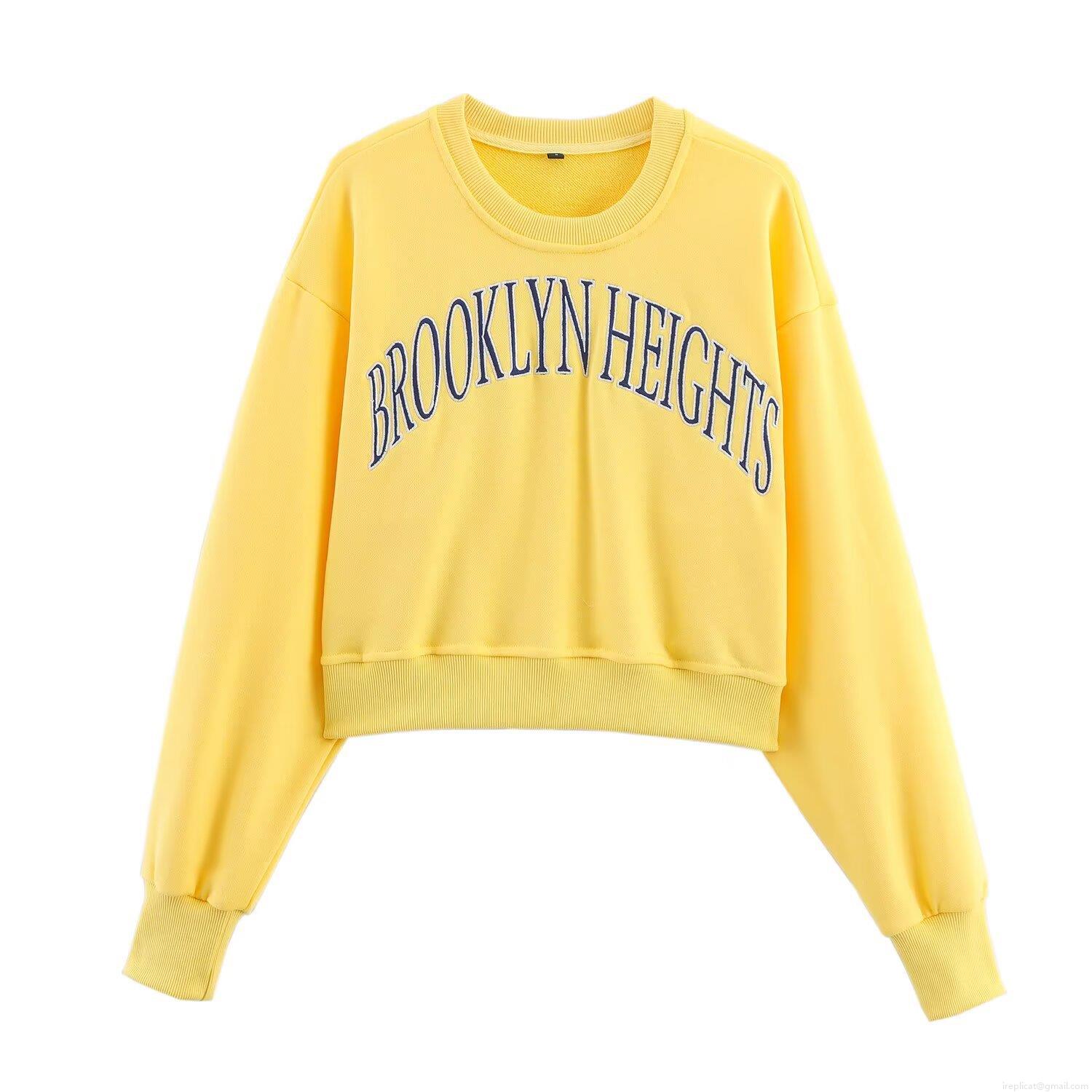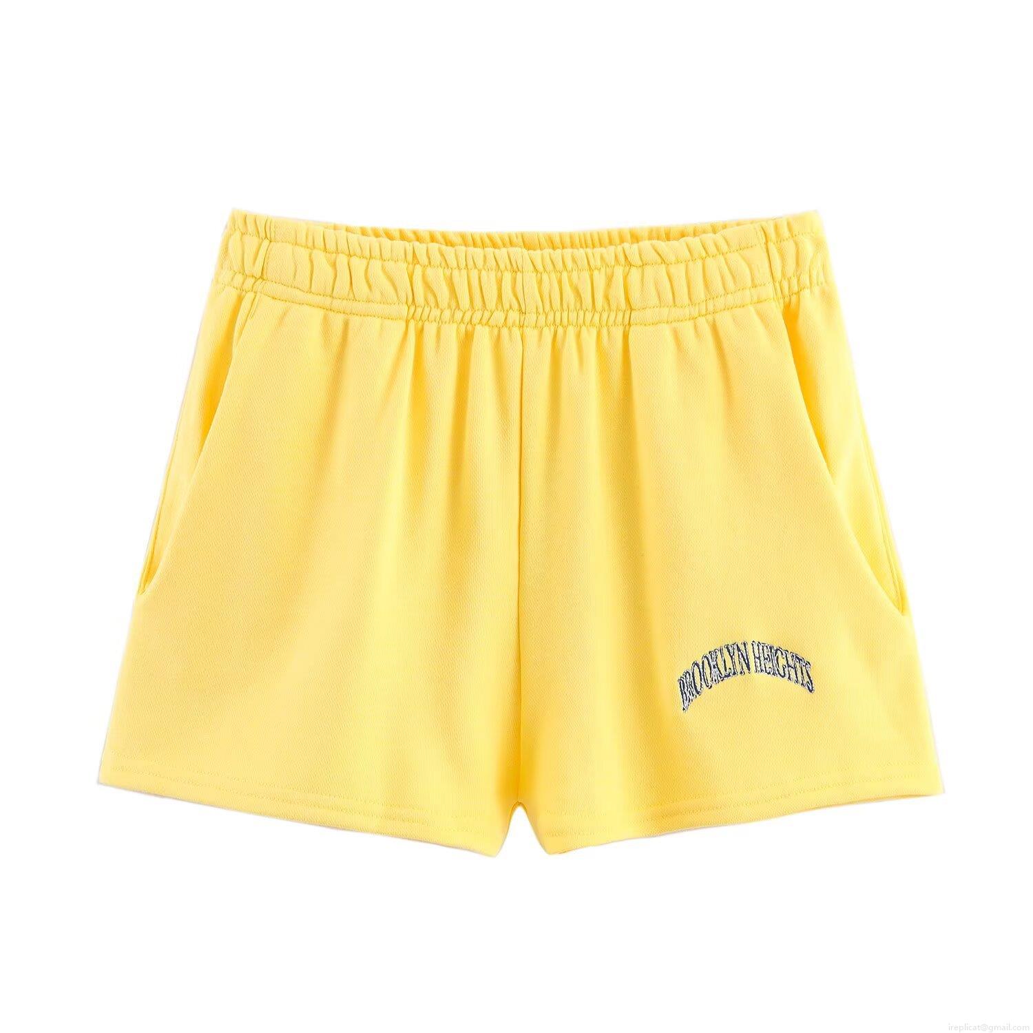• Women's Two Piece Set Brooklyn Heights Embroidery Cotton Blend Long Sleeve Crop Top Sweatshirt And Elastic Waist Shorts Casual Streetwear Sporty Yellow Lounge Wear