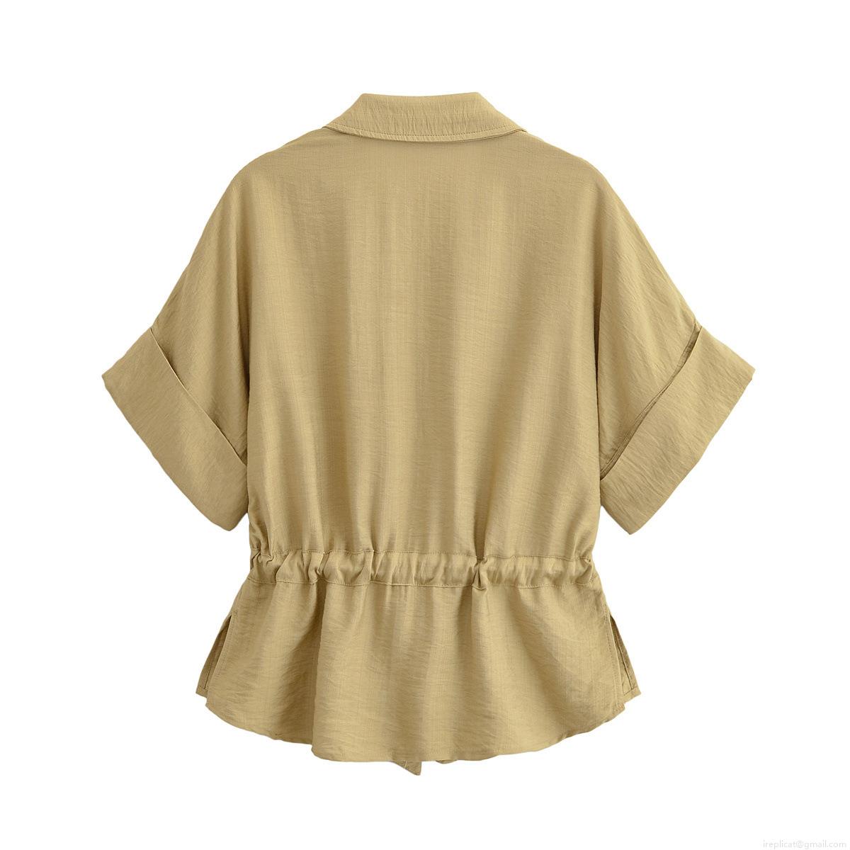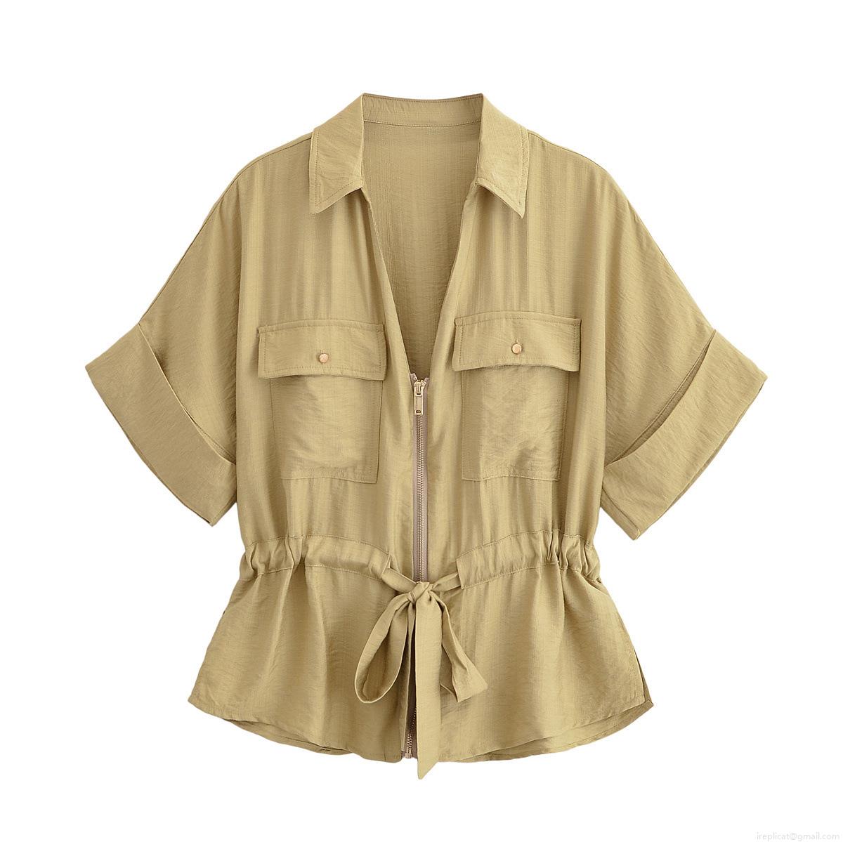 • Women's Two Piece Set Casual Short Sleeve Zipper Shirt And High Waist Wide Leg Pants Polyester Linen Texture Summer Streetwear Outfits For Women