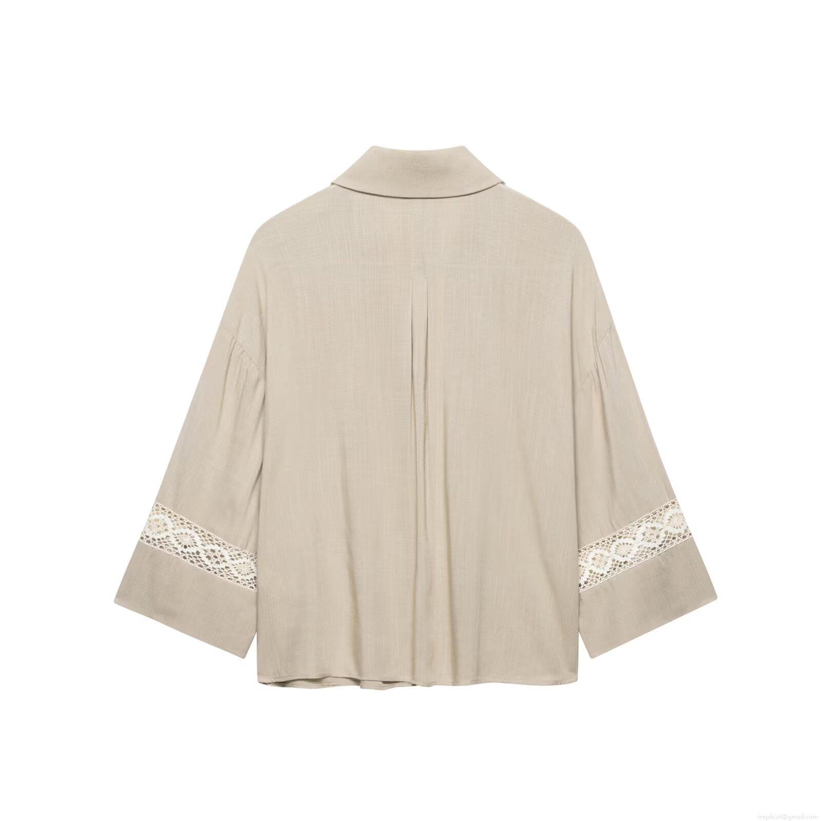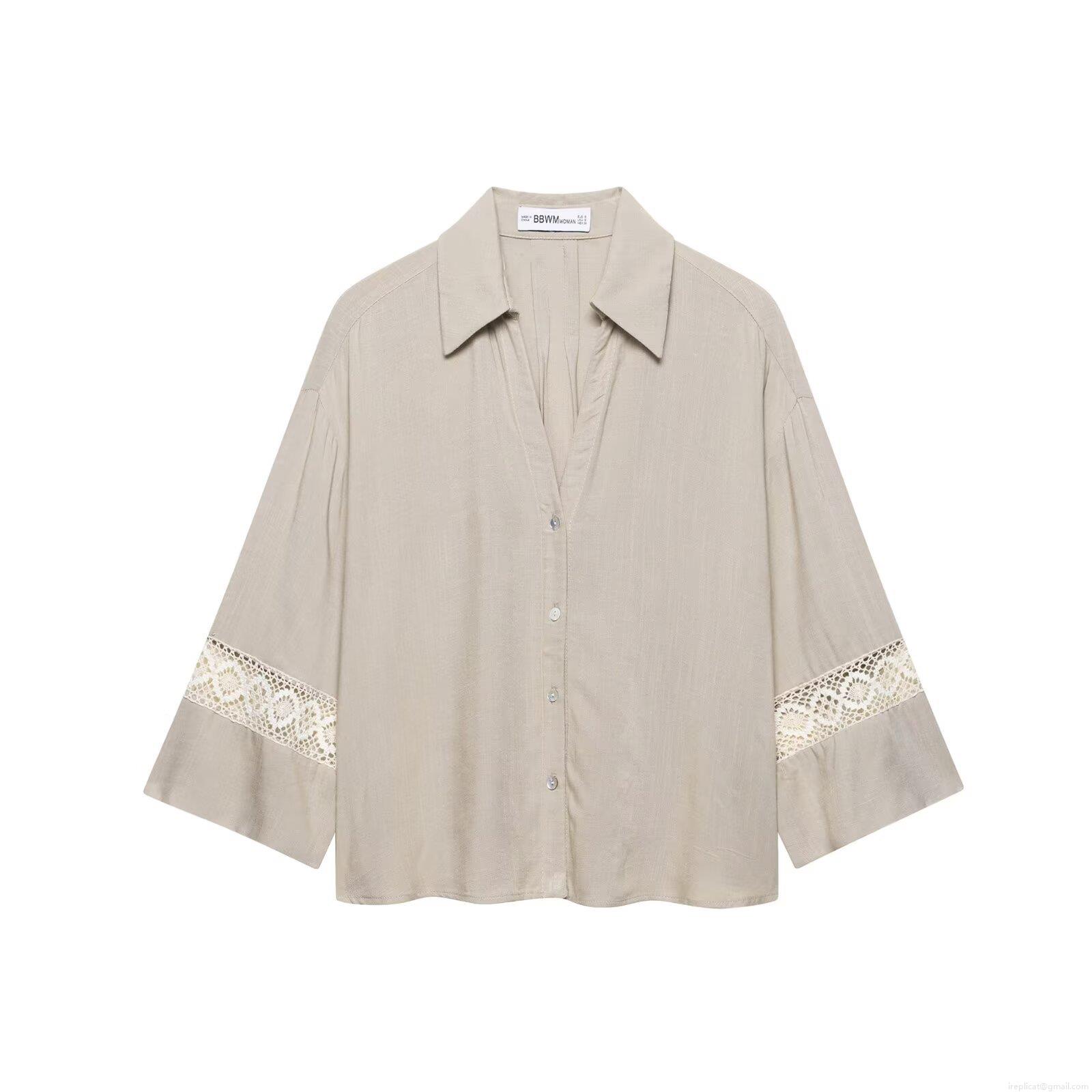 • Women's Two Piece Set Casual V Neck Button Down Long Sleeve Shirt And Wide Leg Drawstring Pants With Lace Patchwork Hollow Out Embroidery Bohemian Streetwear Outfits