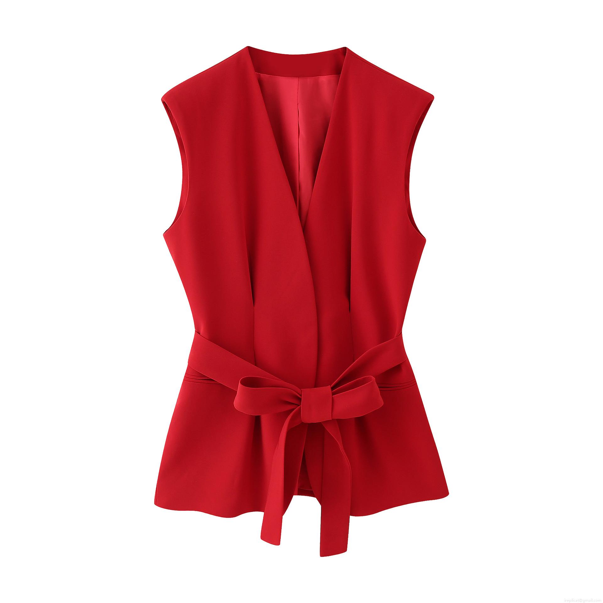 • Women's Two Piece Set Elegant V Neck Sleeveless Blazer Vest Waistcoat With Bow Tie Belt And High Waisted Wide Leg Pants Fashion Solid Color Polyester Outfits