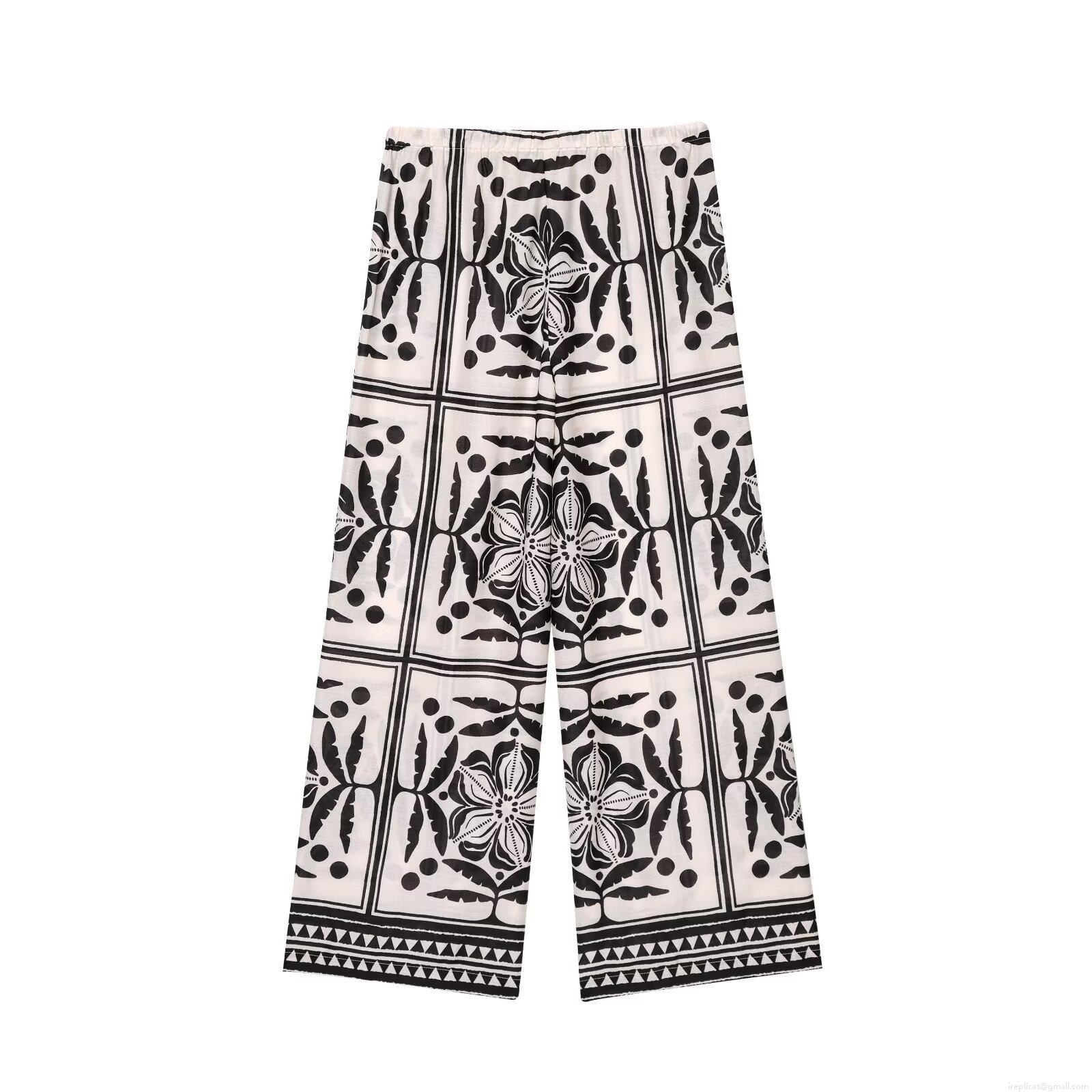 • Women's Two Piece Set Floral Print Long Sleeve Button Down Shirt And Drawstring Wide Leg Pants Polyester Loose Outfits Casual Bohemian Suits For Women