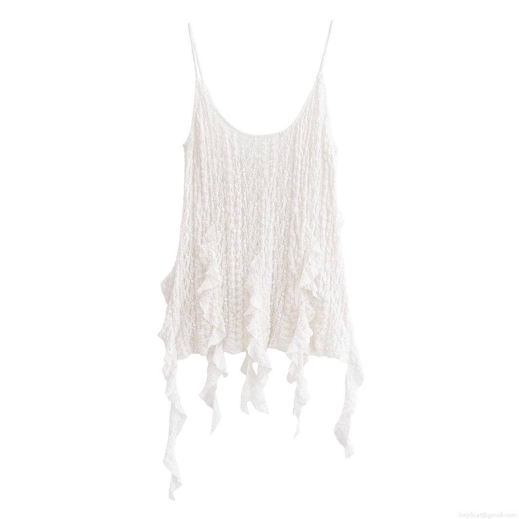 Women's Two Piece Set Lace Pleated Ruffle Camisole Top And High Waist Wide Leg Pants Casual Summer Streetwear Outfit For Women