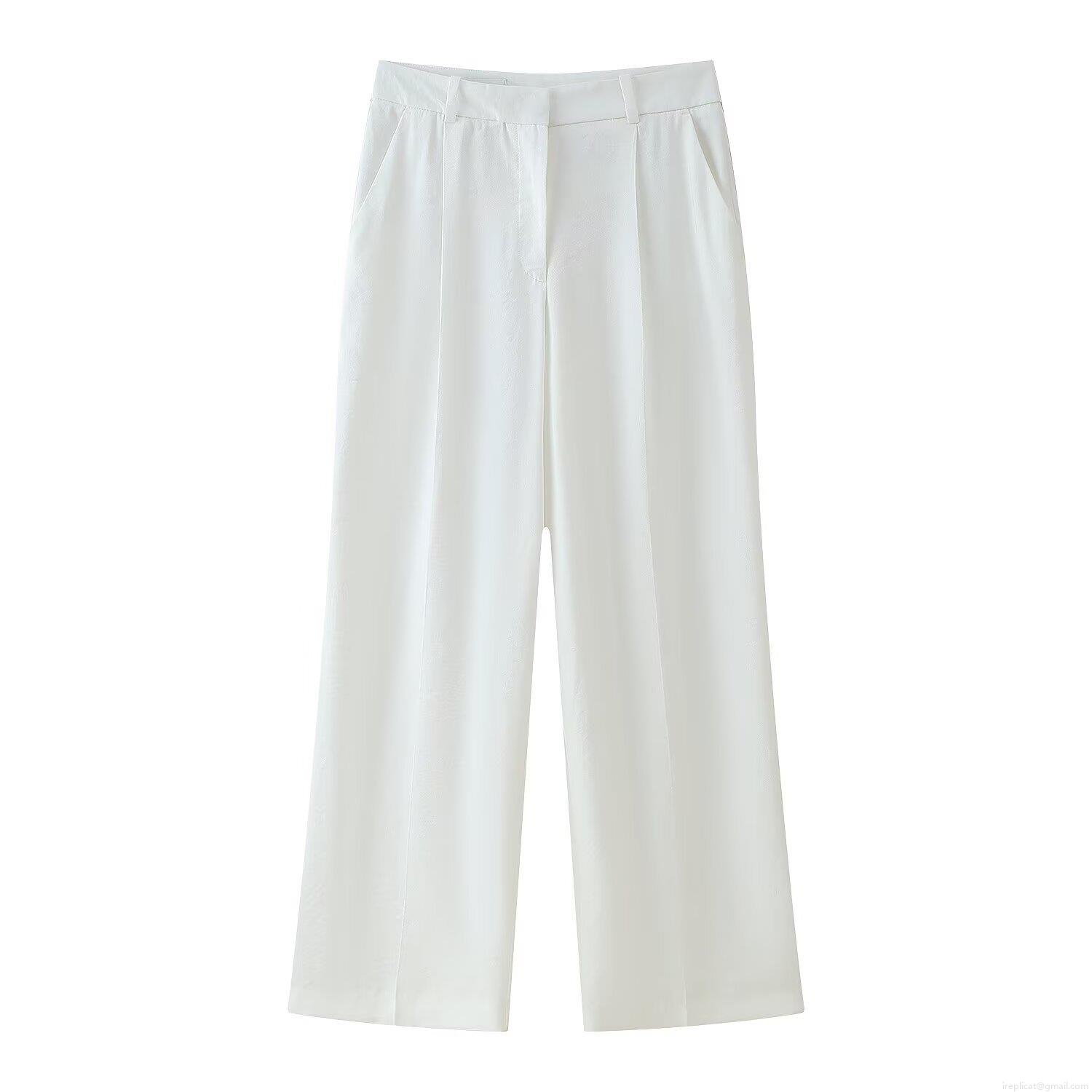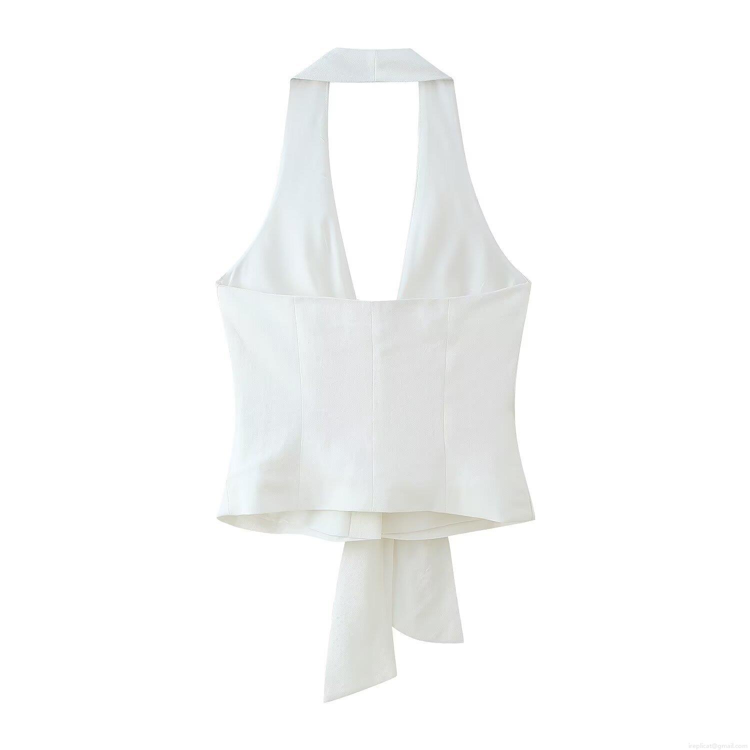 • Women's Two Piece Set Sexy Halter Knotted Crop Top And High Waist Pleated Wide Leg Pants Solid White Polyester Casual Streetwear Suit