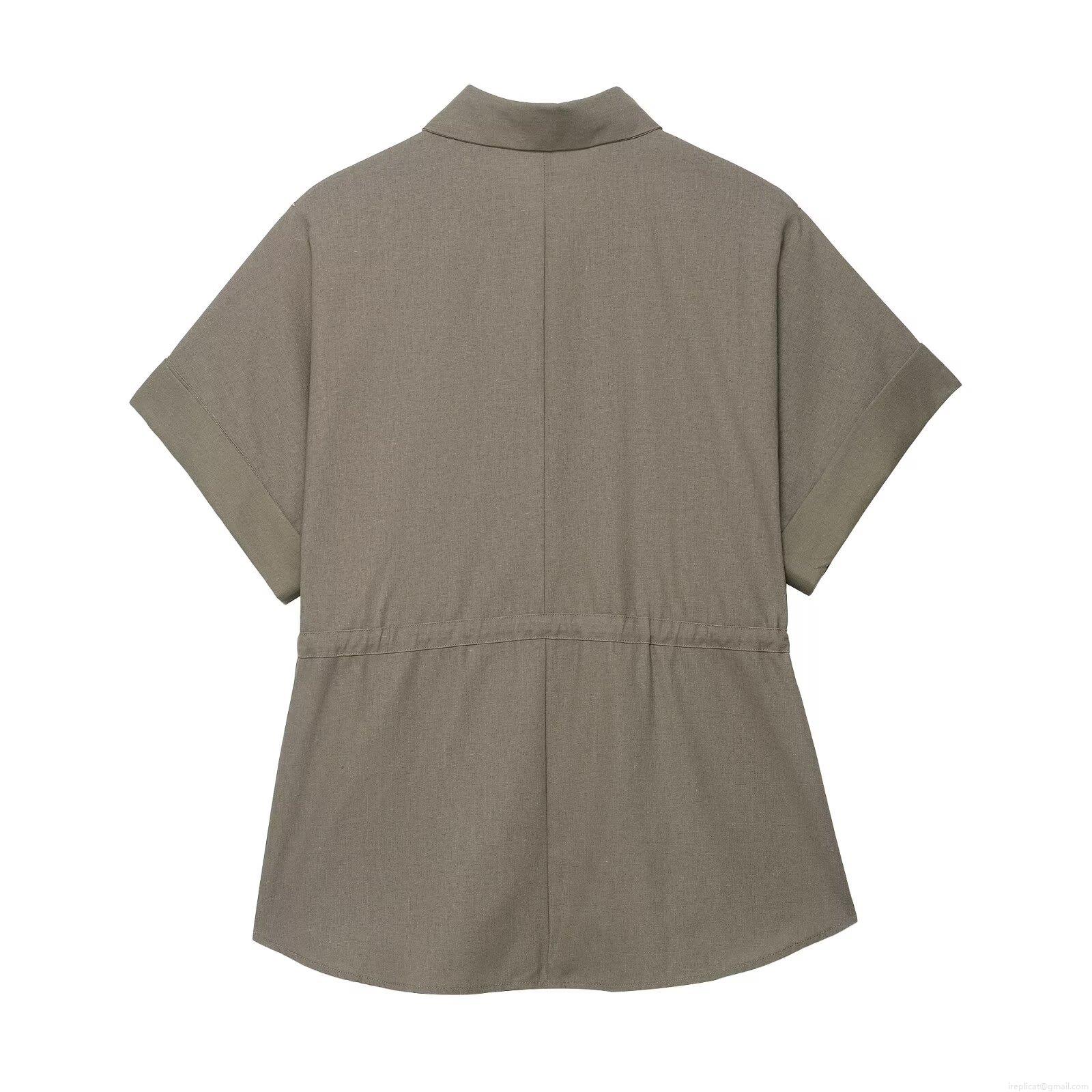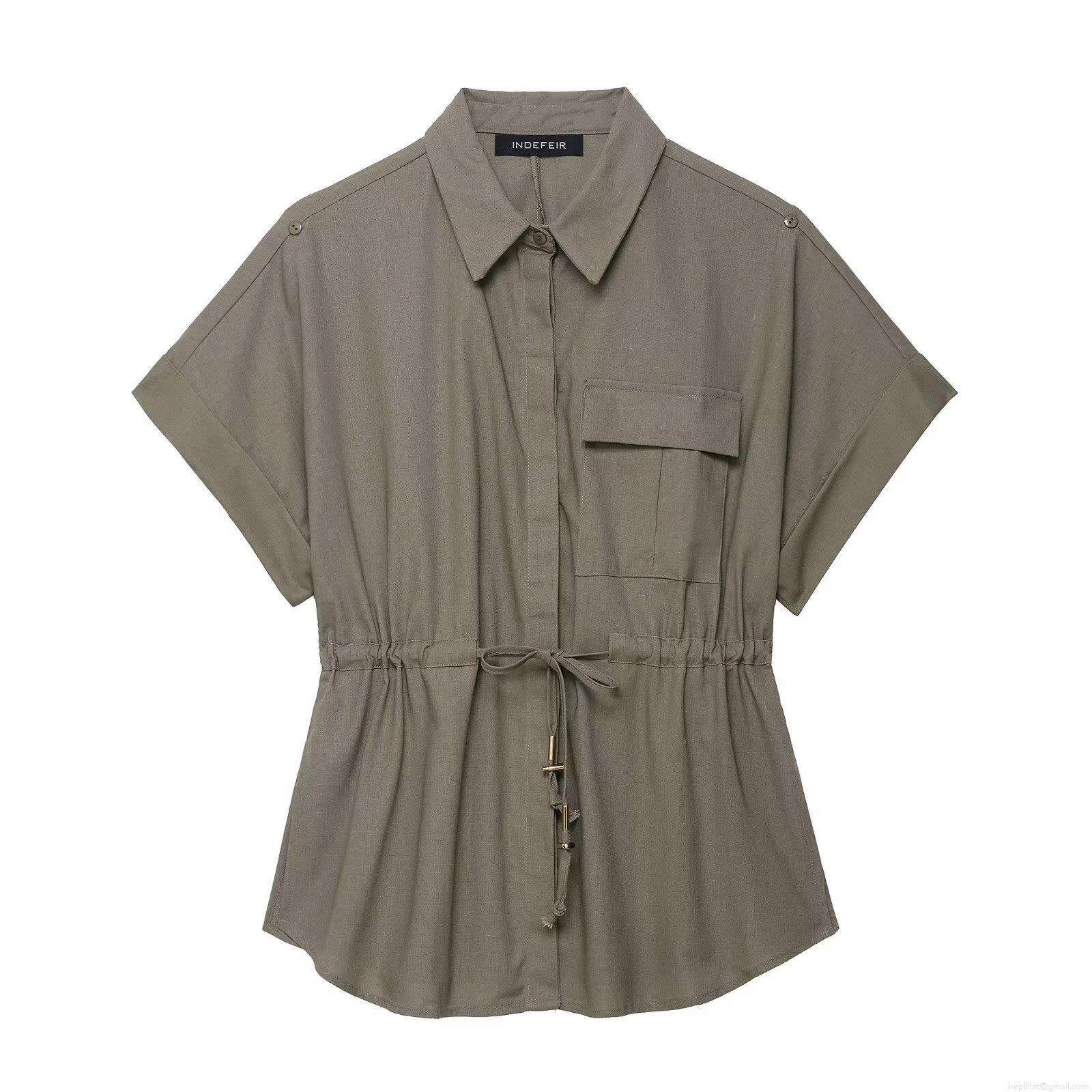 • Women's Two Piece Set Short Sleeve Drawstring Cargo Shirt and Wide Leg Pants Casual Streetwear Polyester Blend Linen Texture Outfit