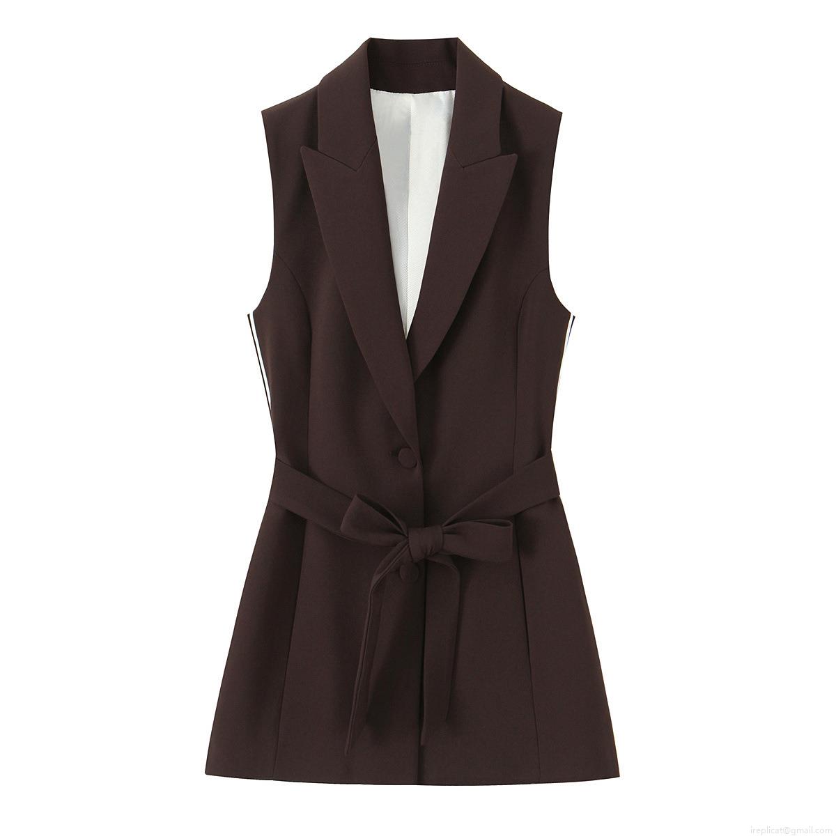 • Women's Two Piece Set Side Stripe Contrast V-Neck Sleeveless Vest With Belt And Straight Leg Pants European American Streetwear Fashion Autumn Outfits