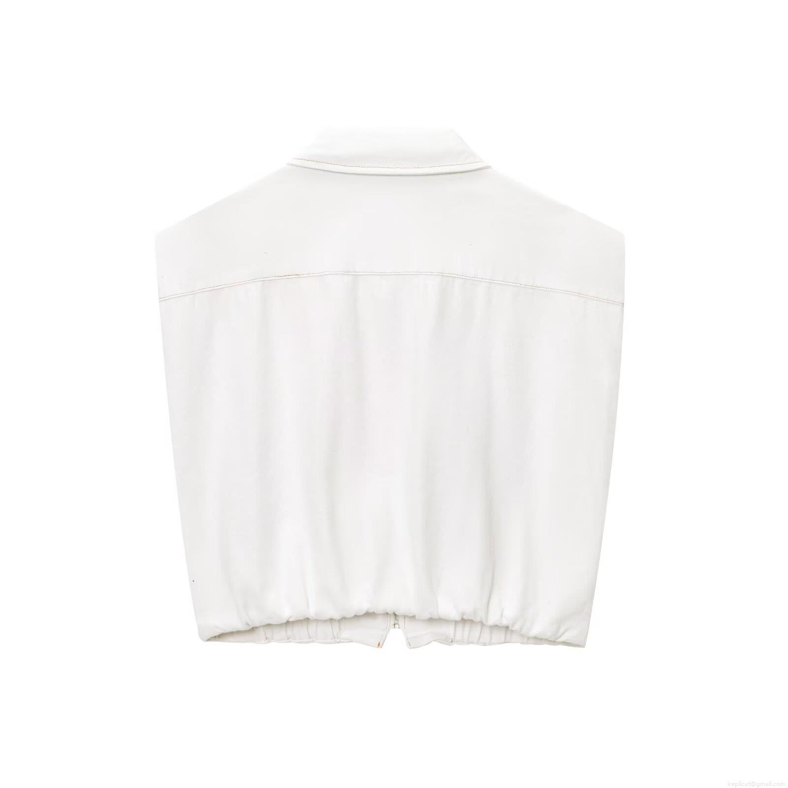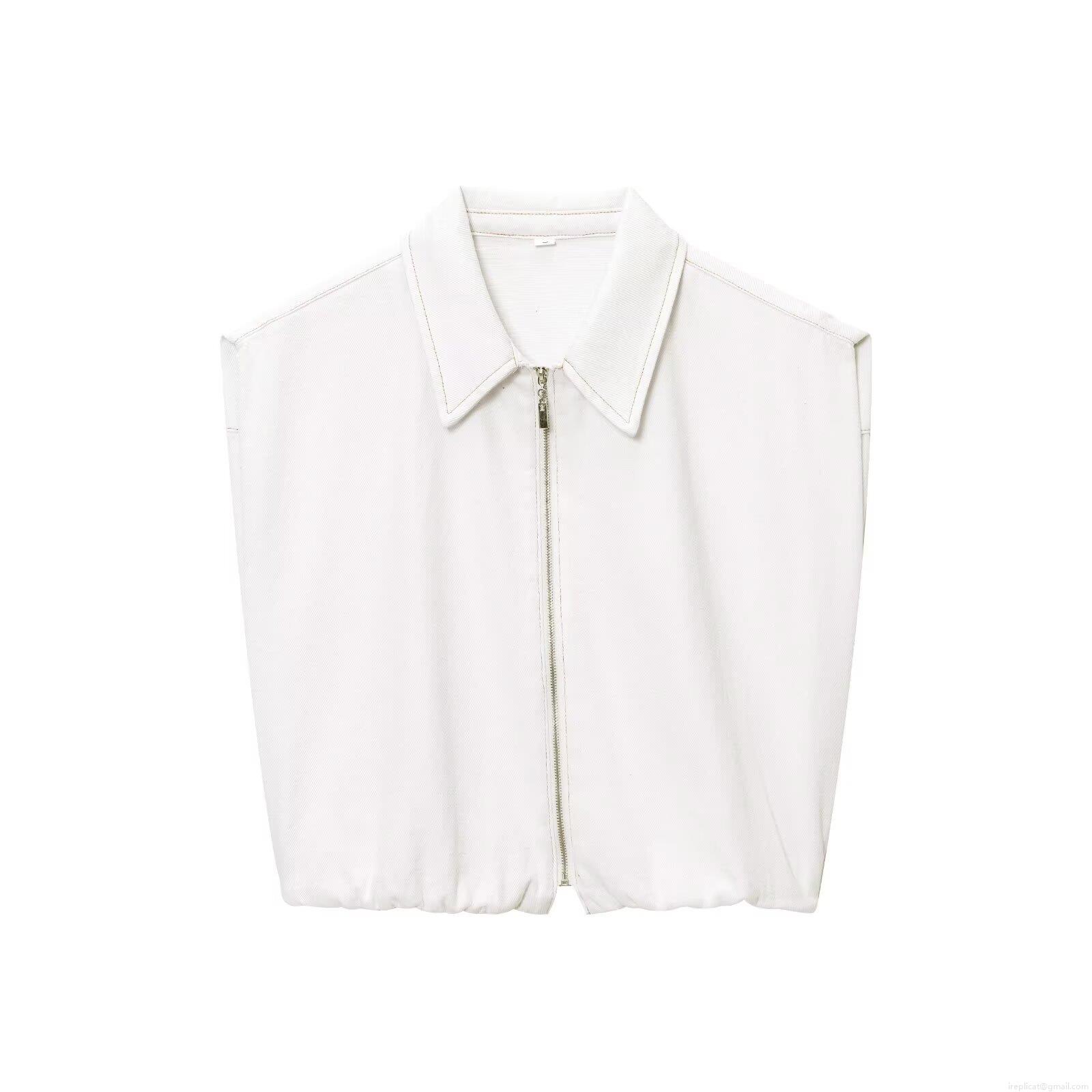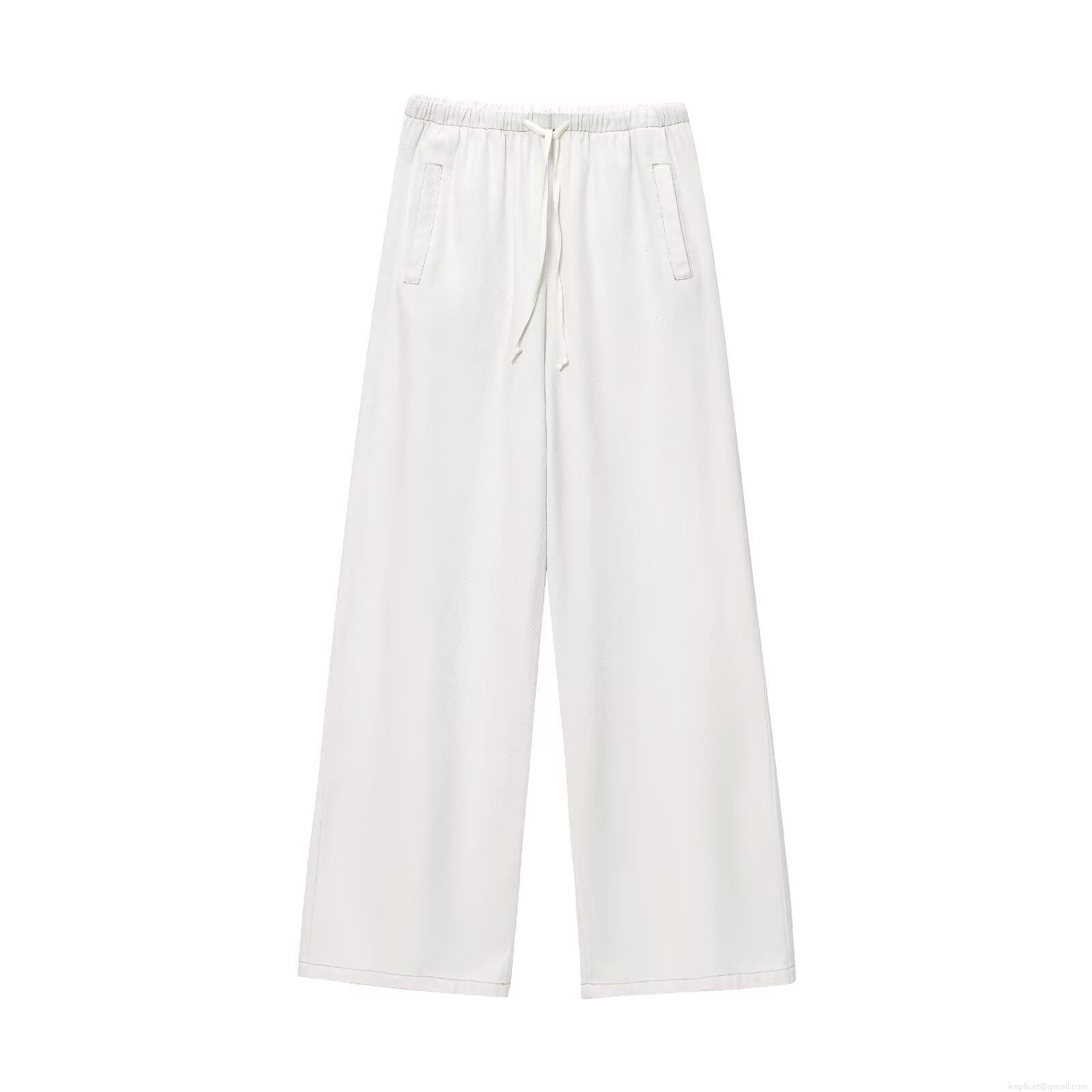• Women's Two Piece Set Sleeveless Zipper Lapel Vest Top and High Waist Wide Leg Drawstring Pants Solid White Streetwear Casual Summer Outfit